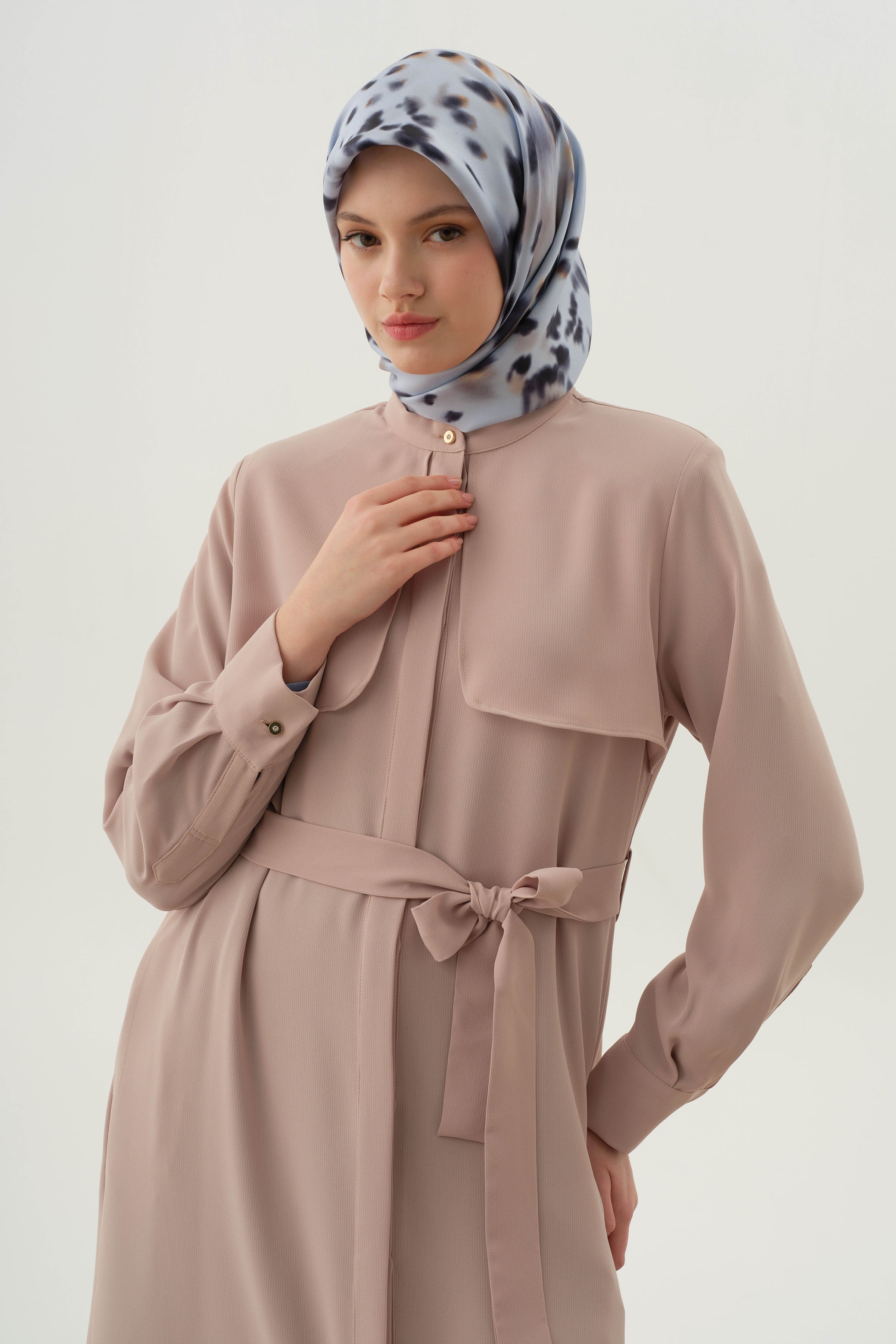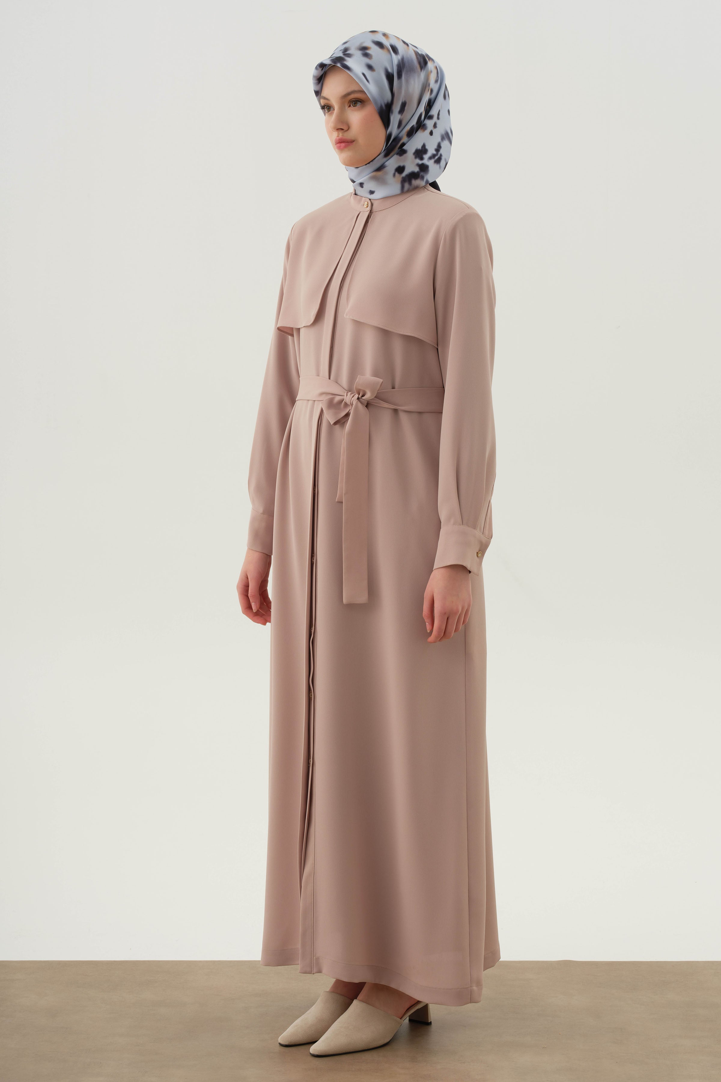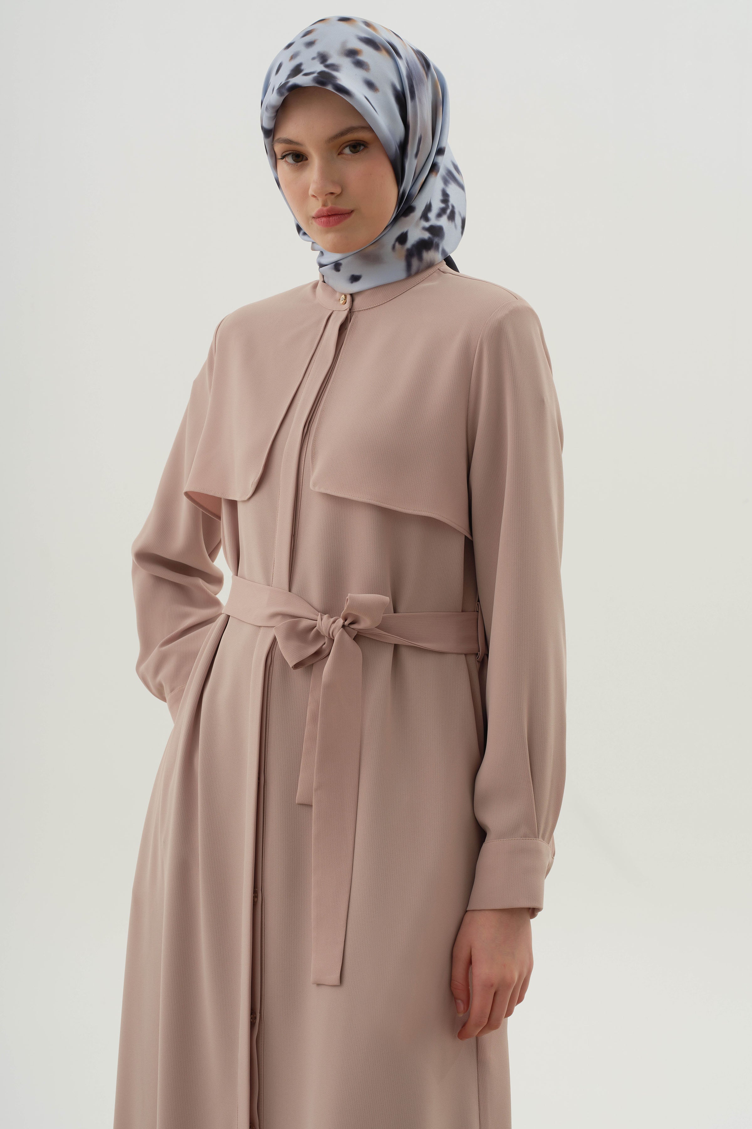 Abaya ceinturée avec détail coupe-vent - Beige