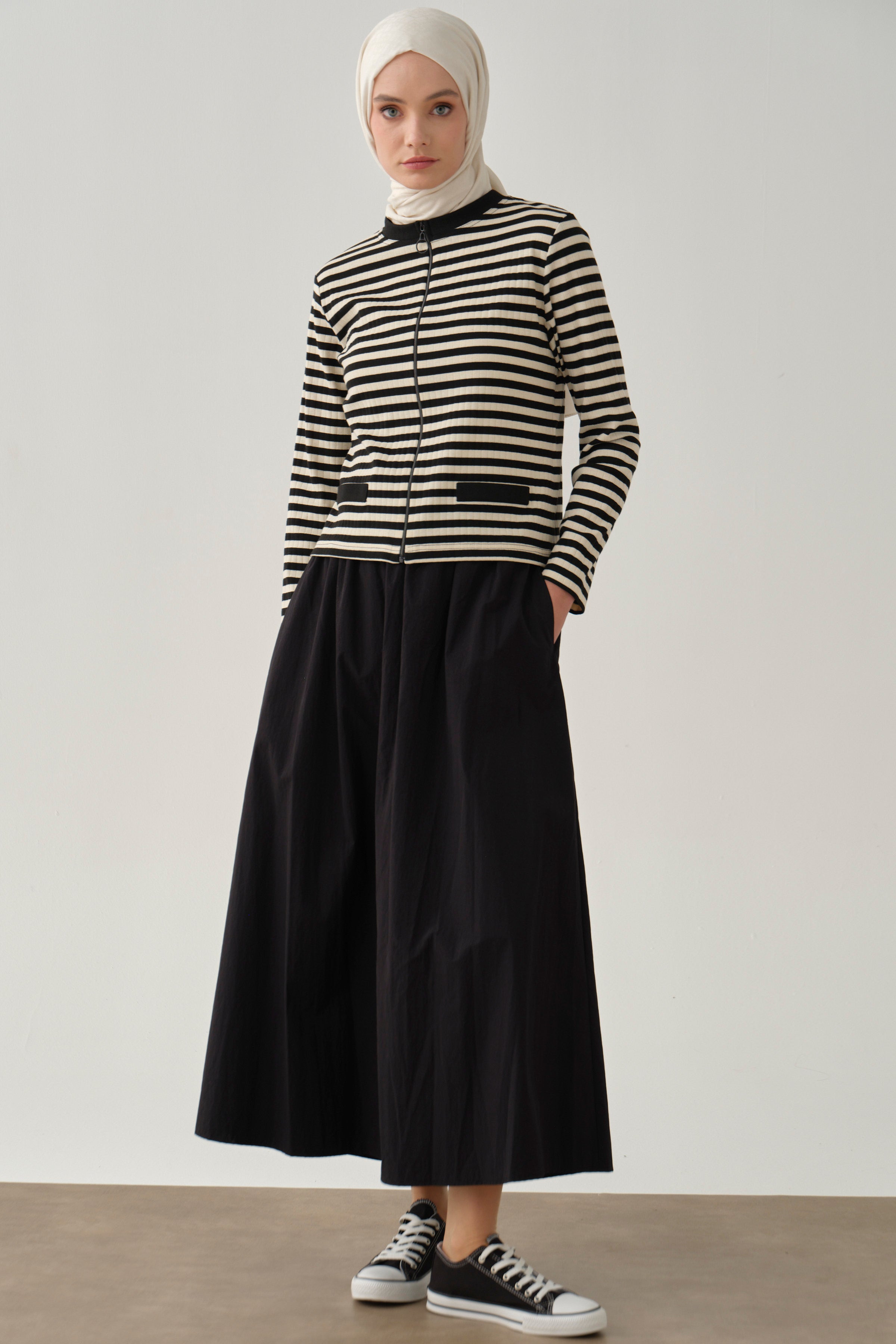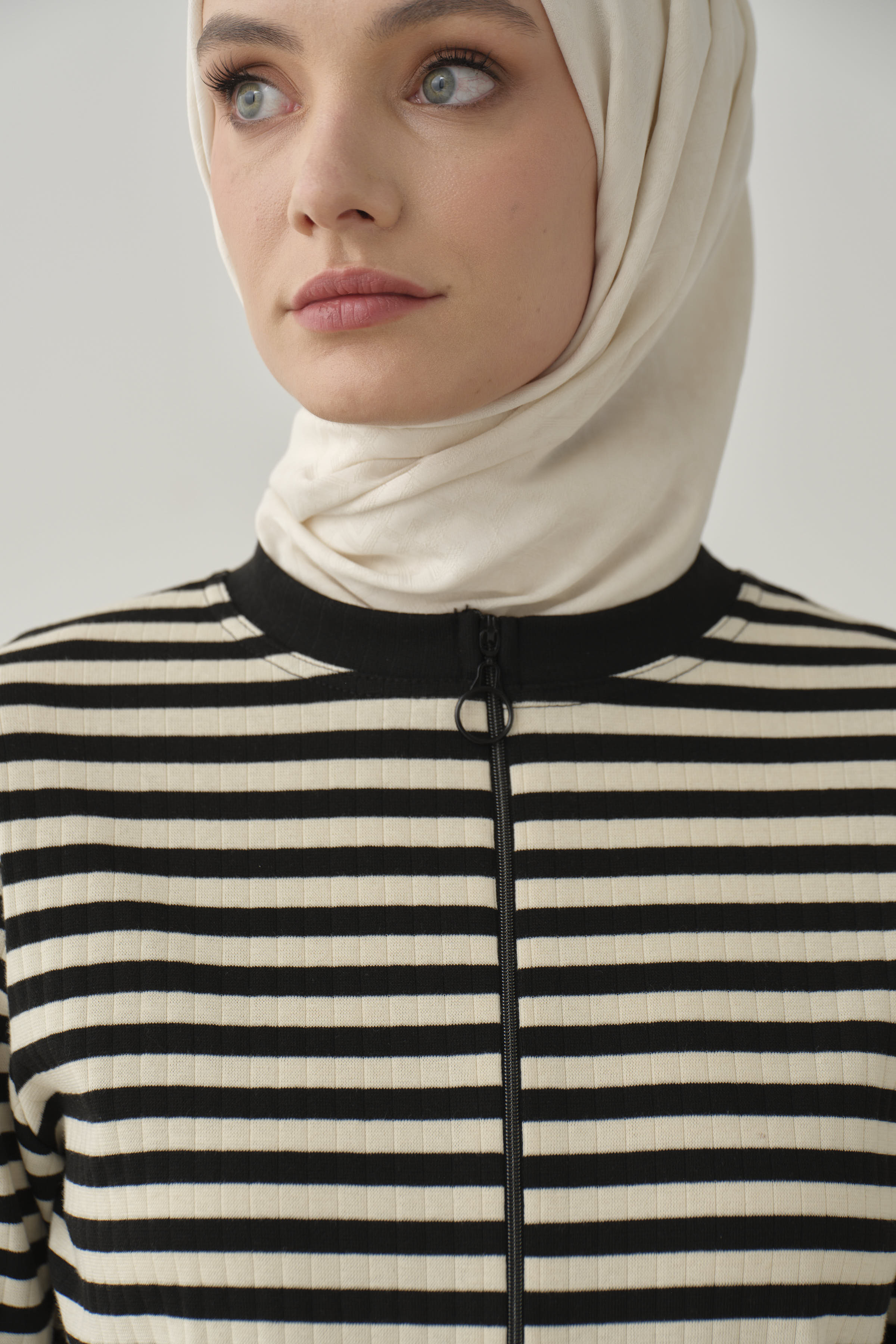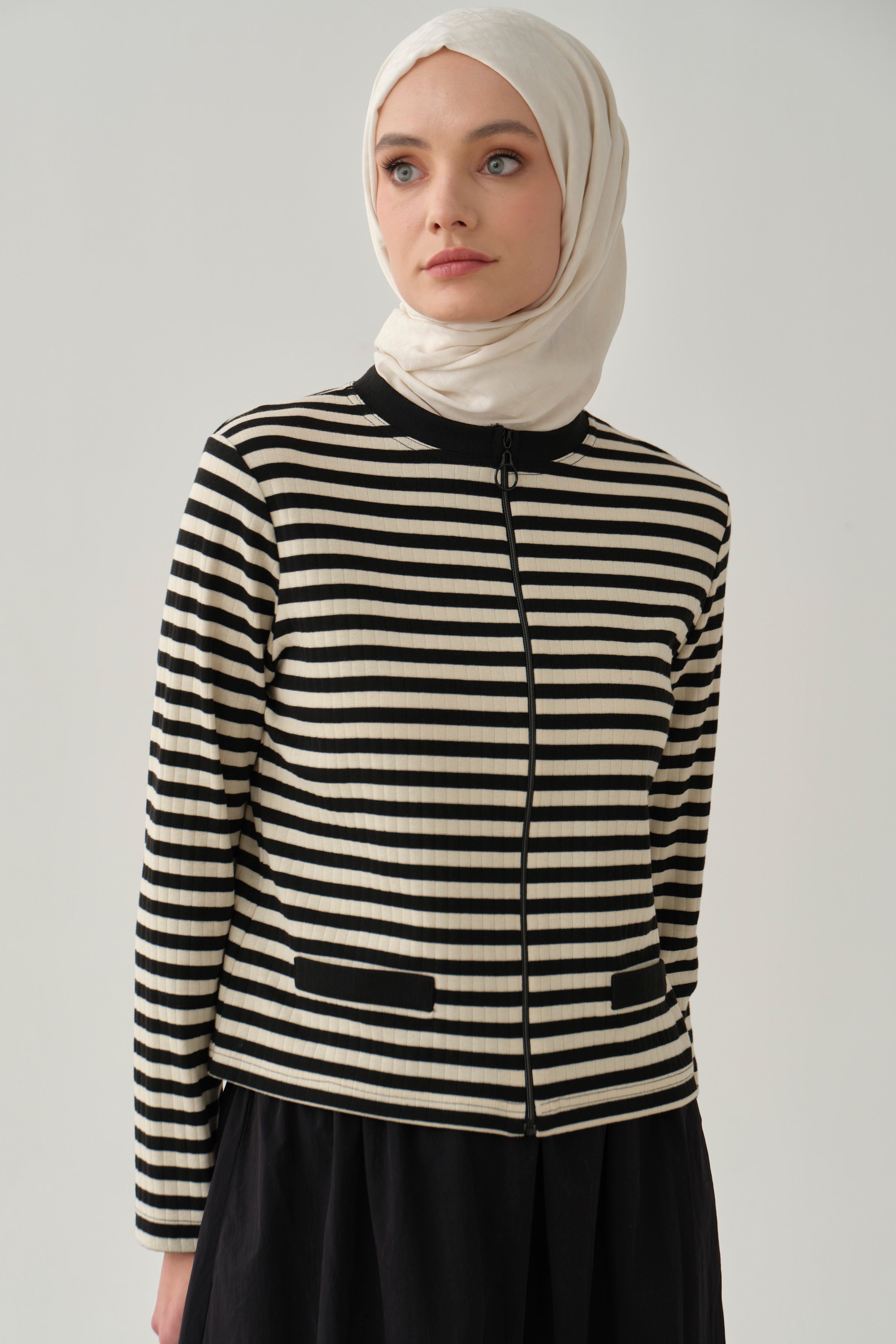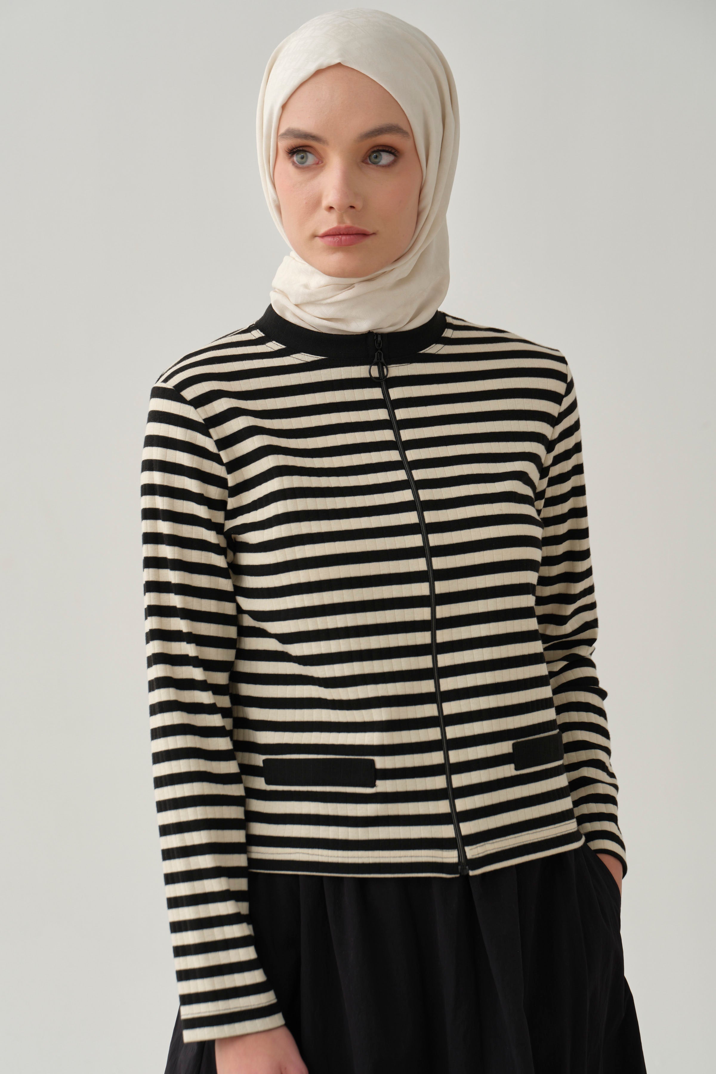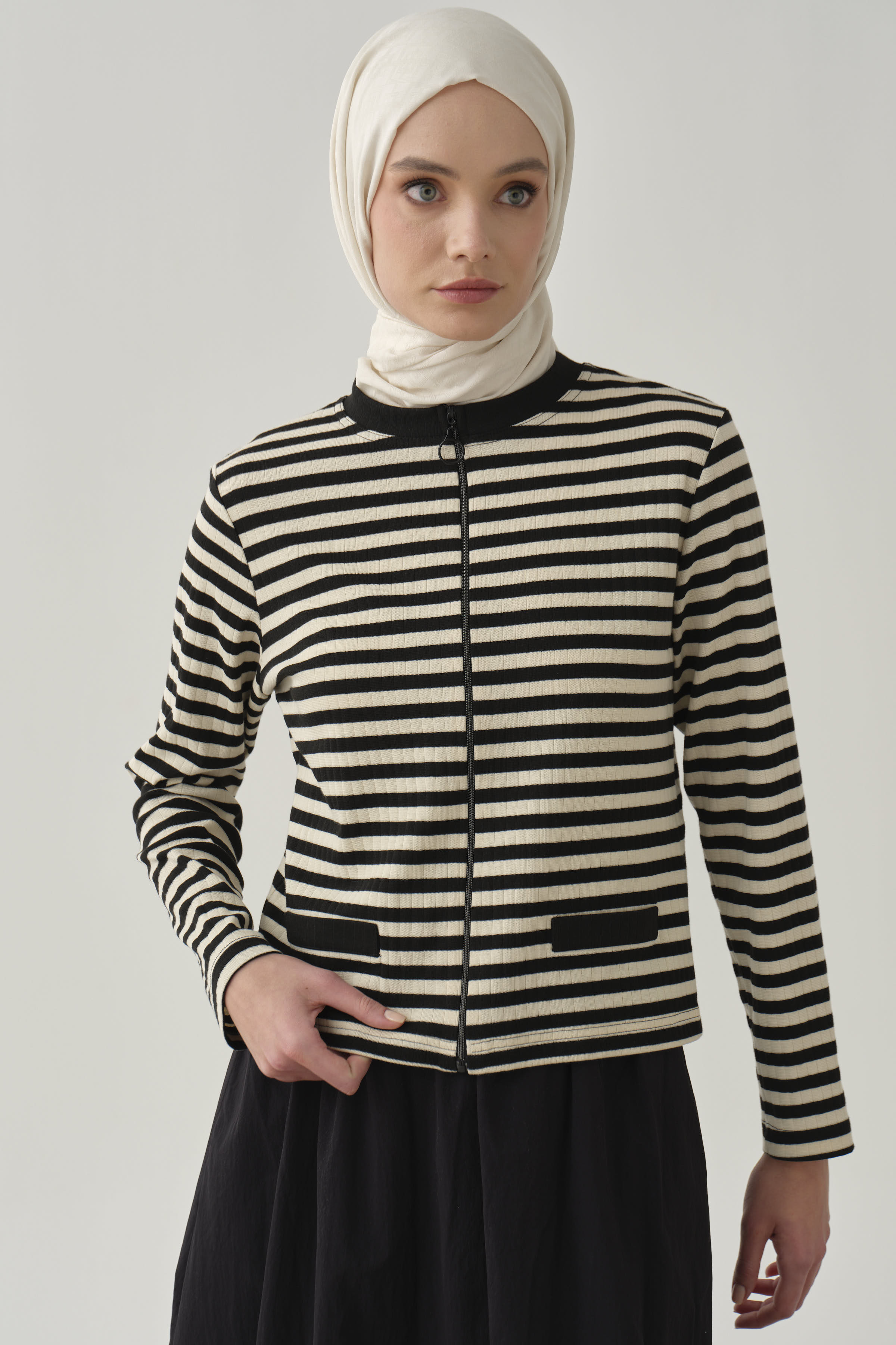 Cardigan rayé à fermeture éclair sur le devant - Noir