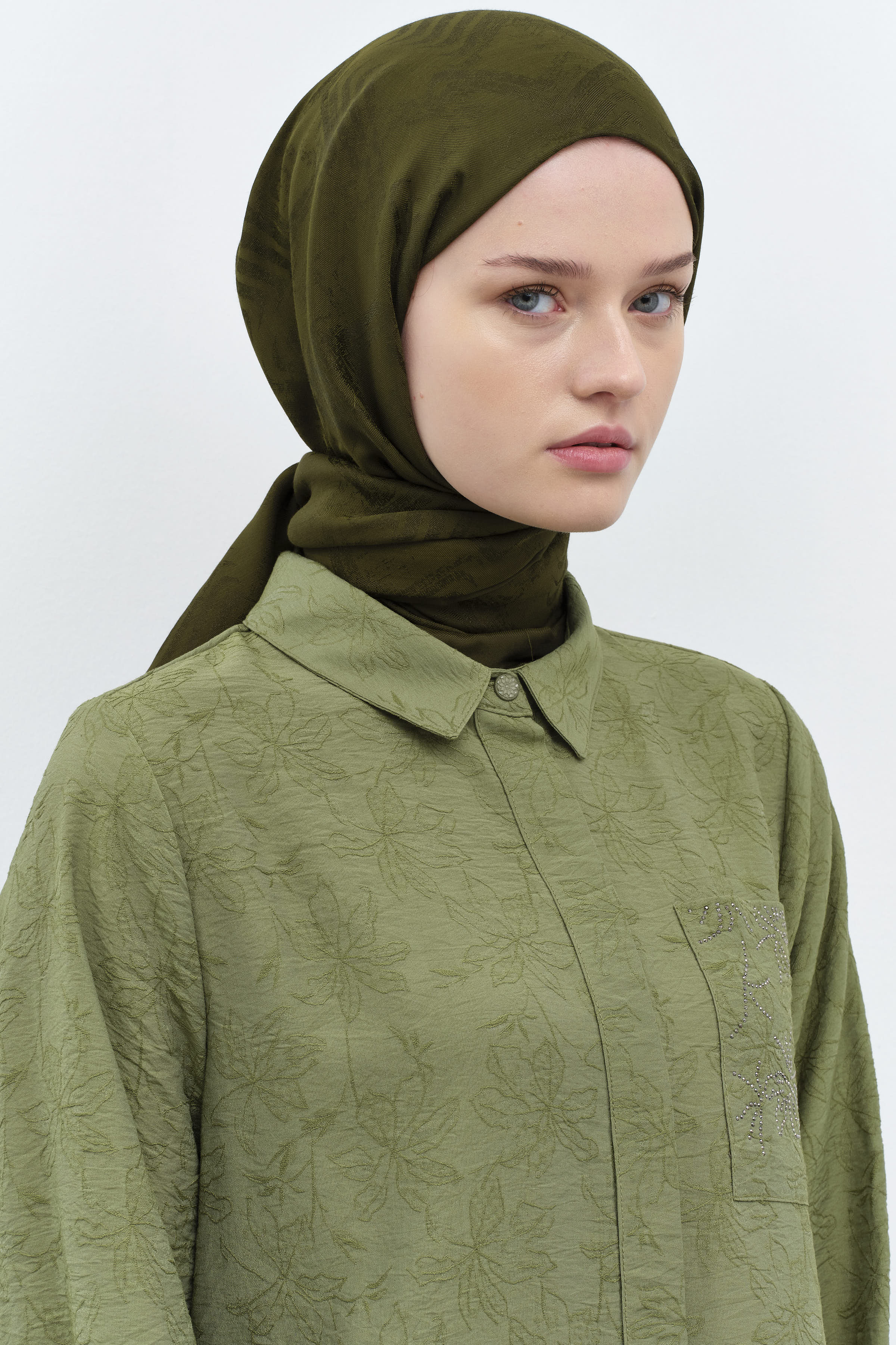 Châle d'émeraude à motifs de vagues - Kaki