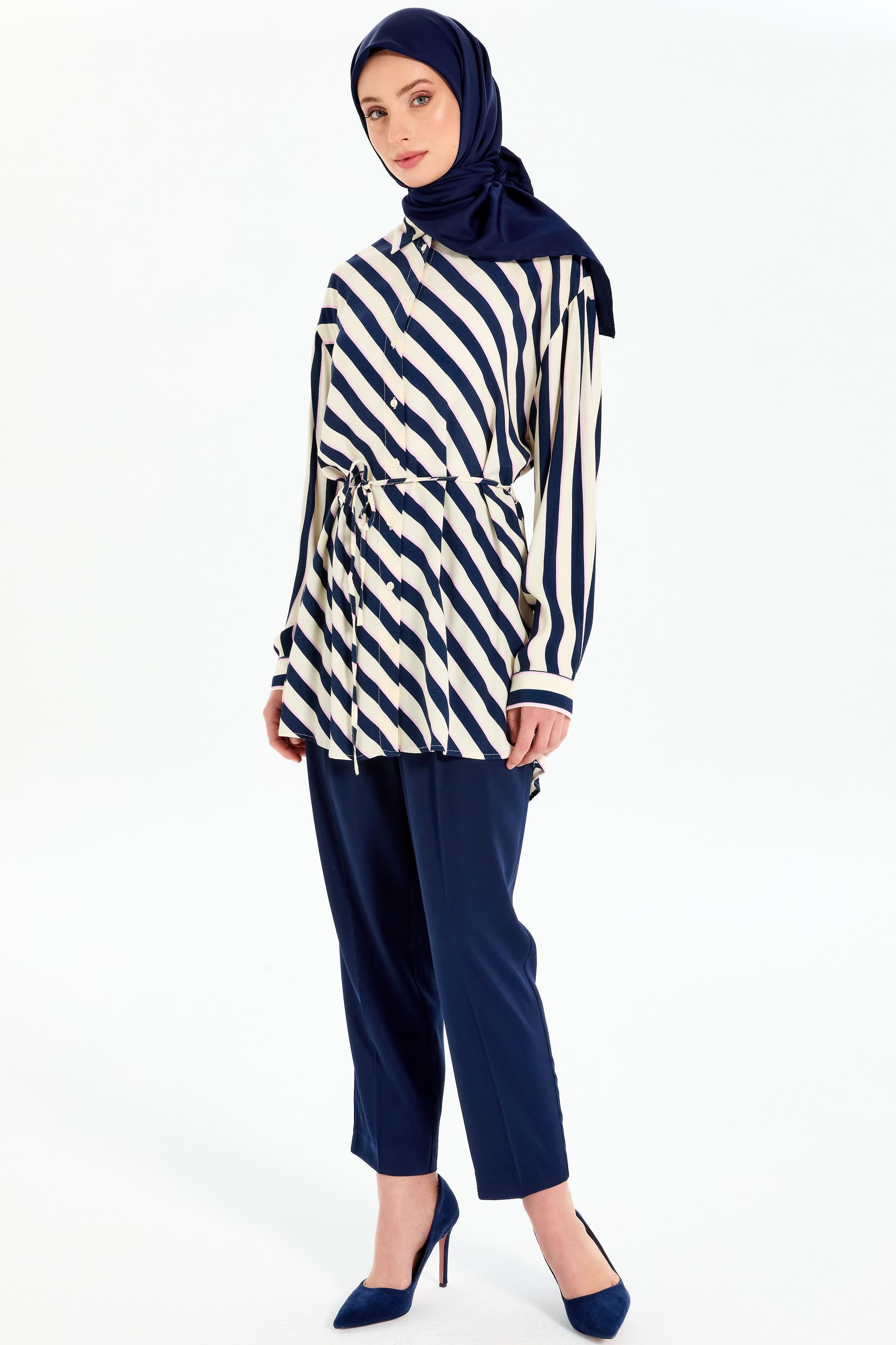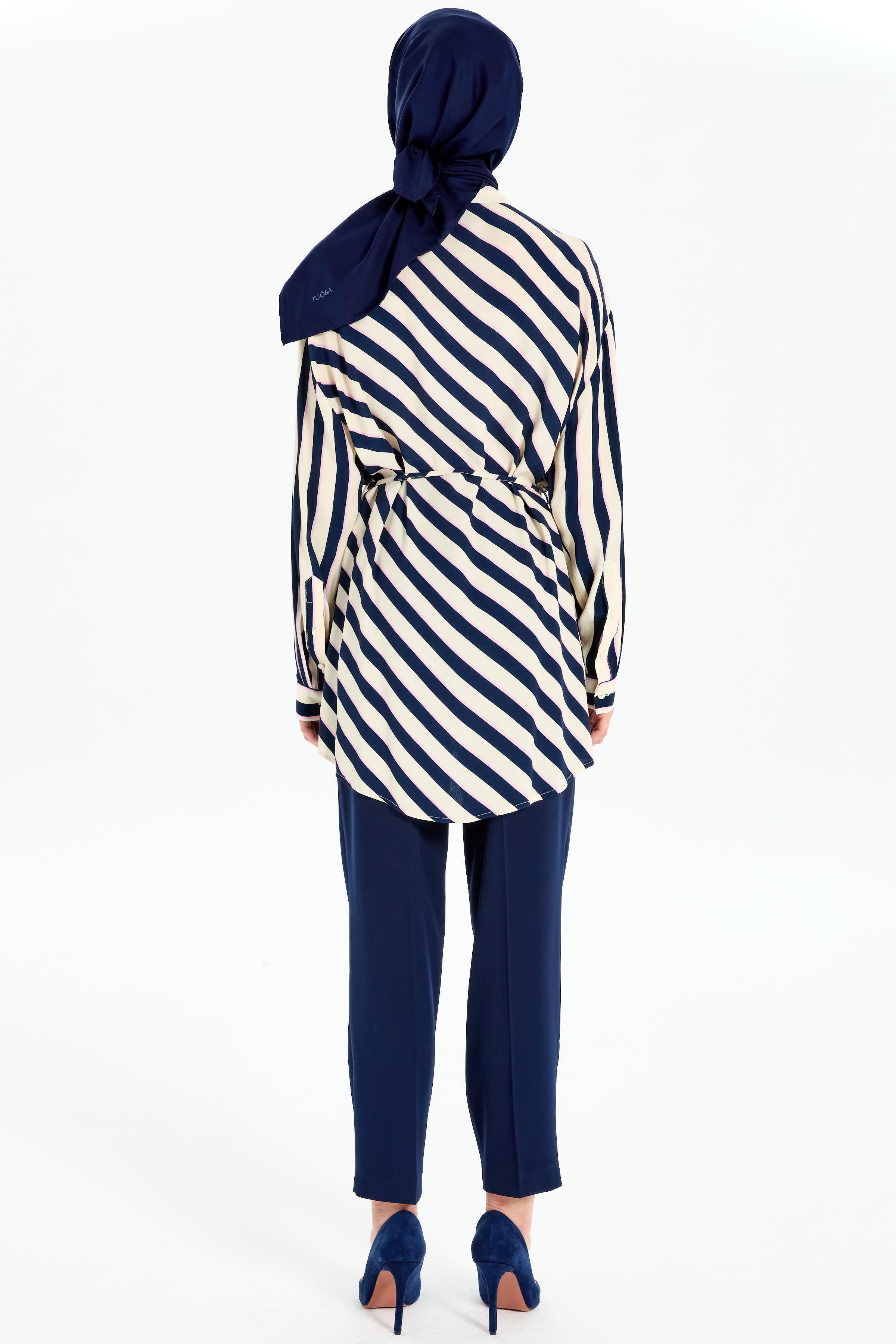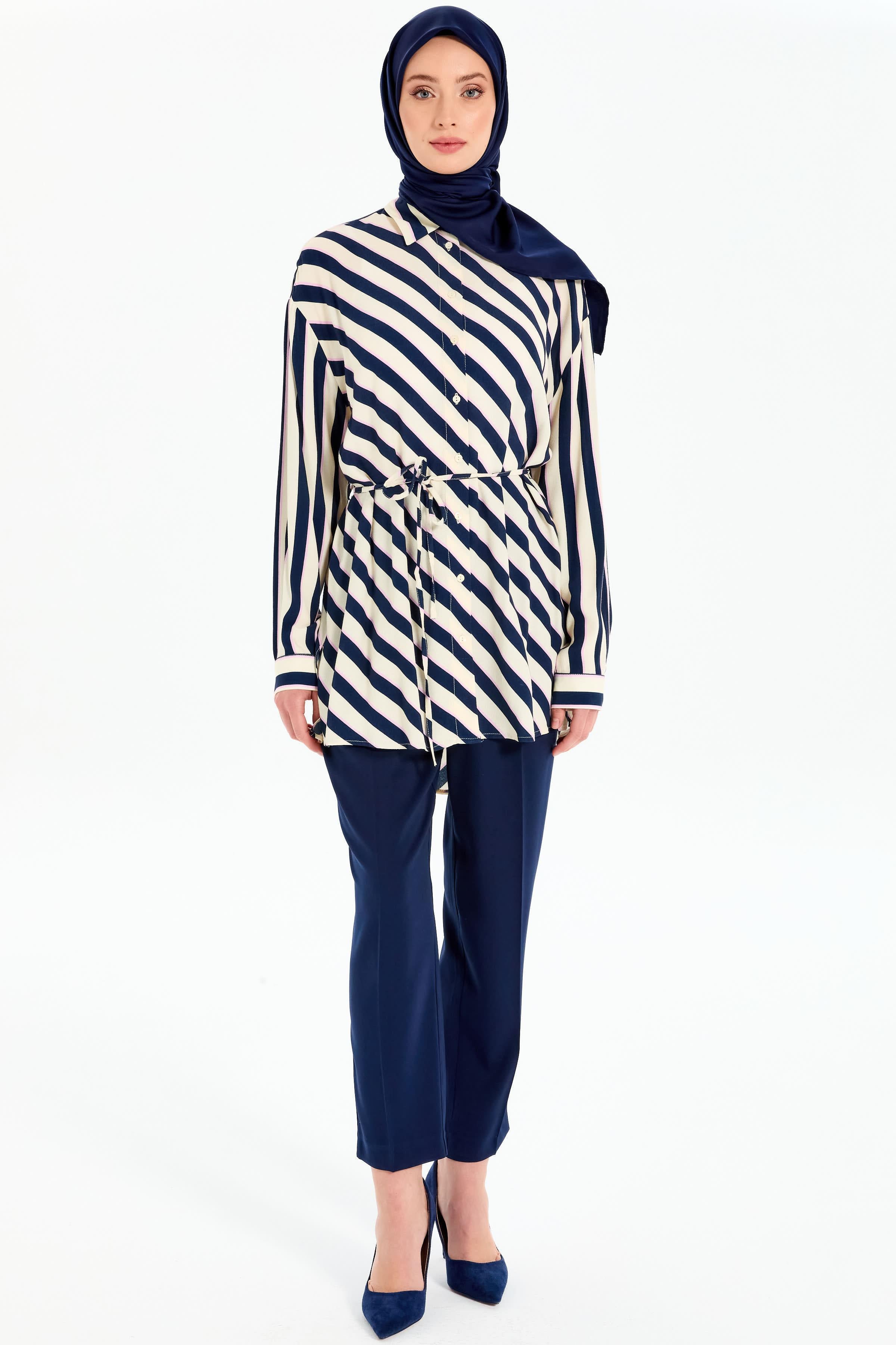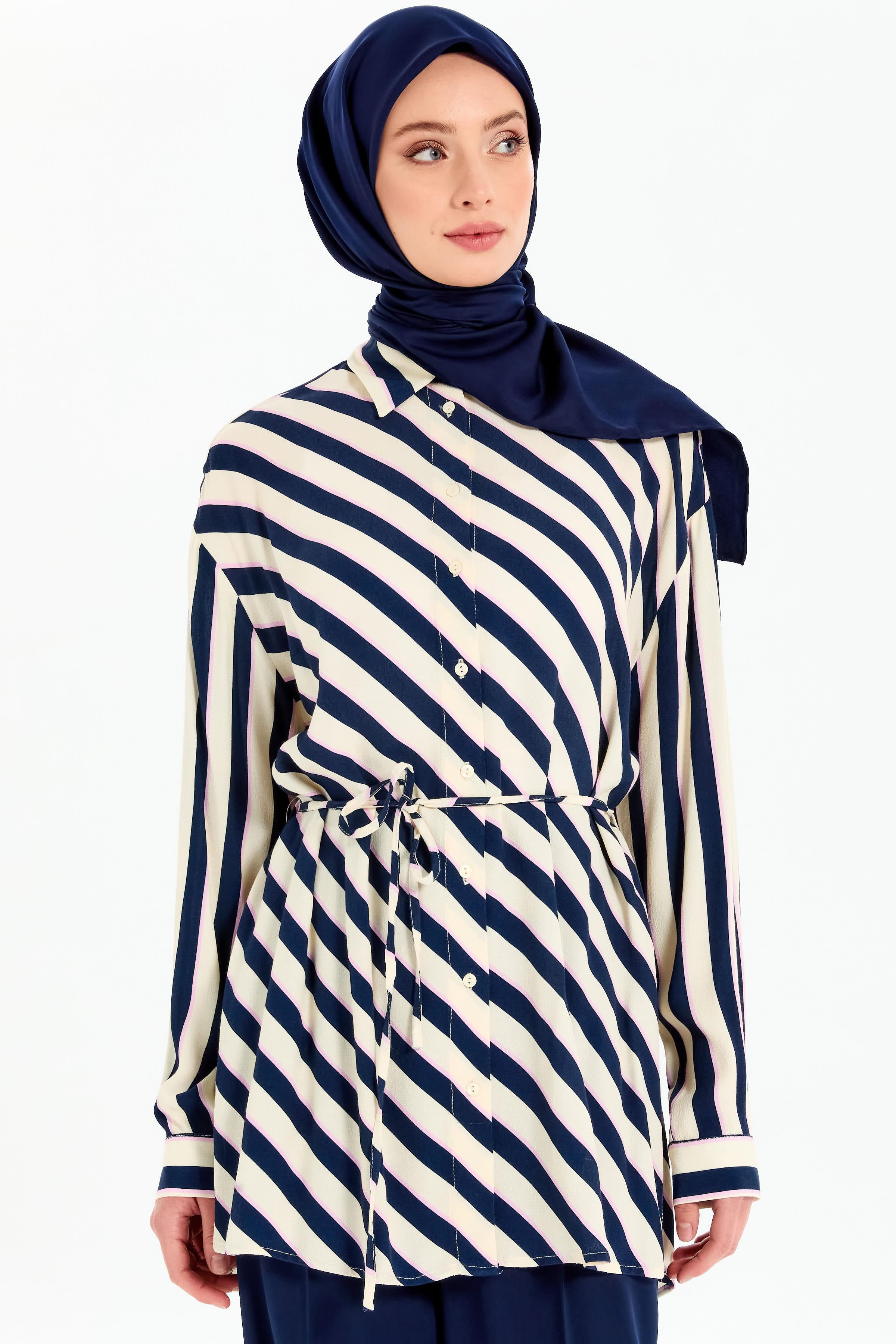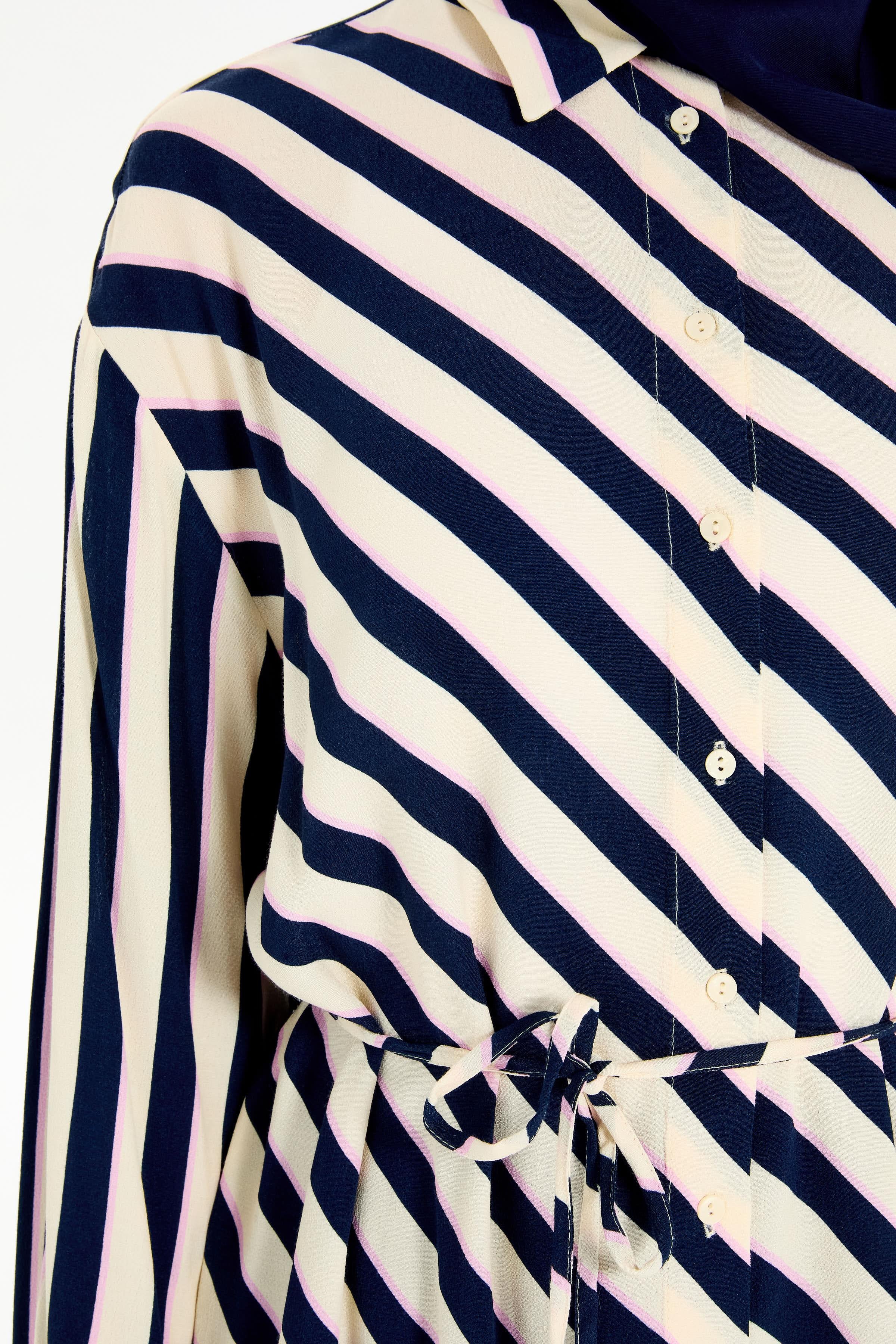 Chemise à cravate rayée à taille biseautée - Blue marine