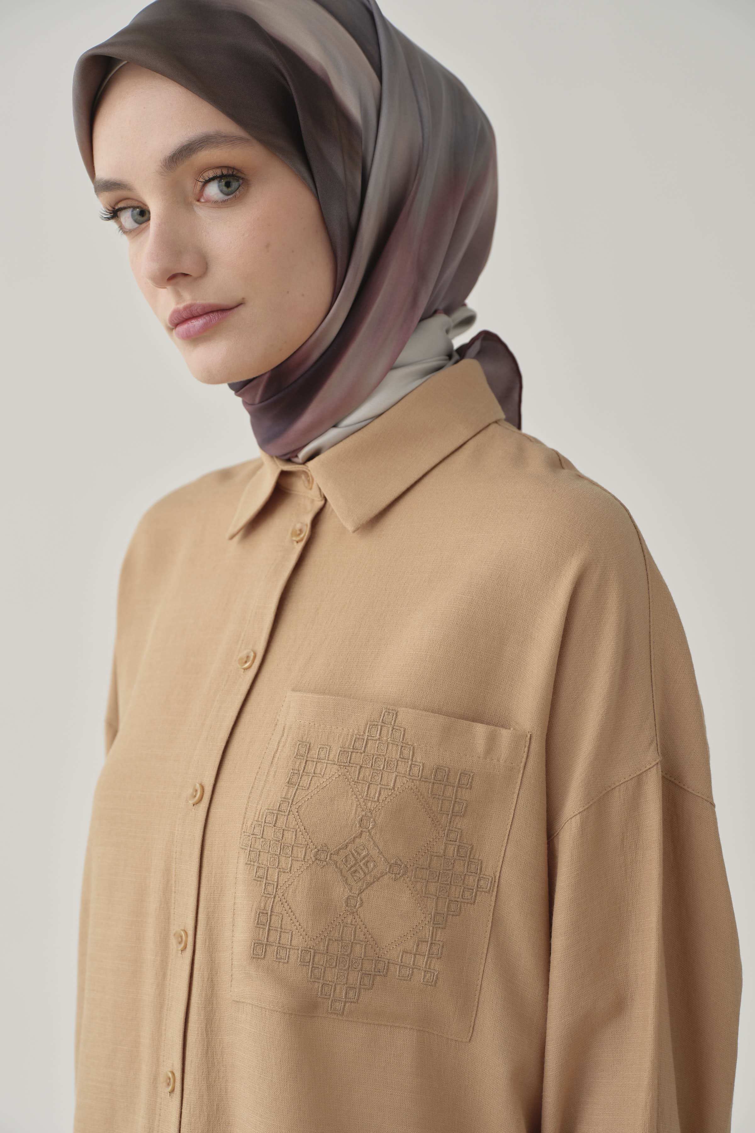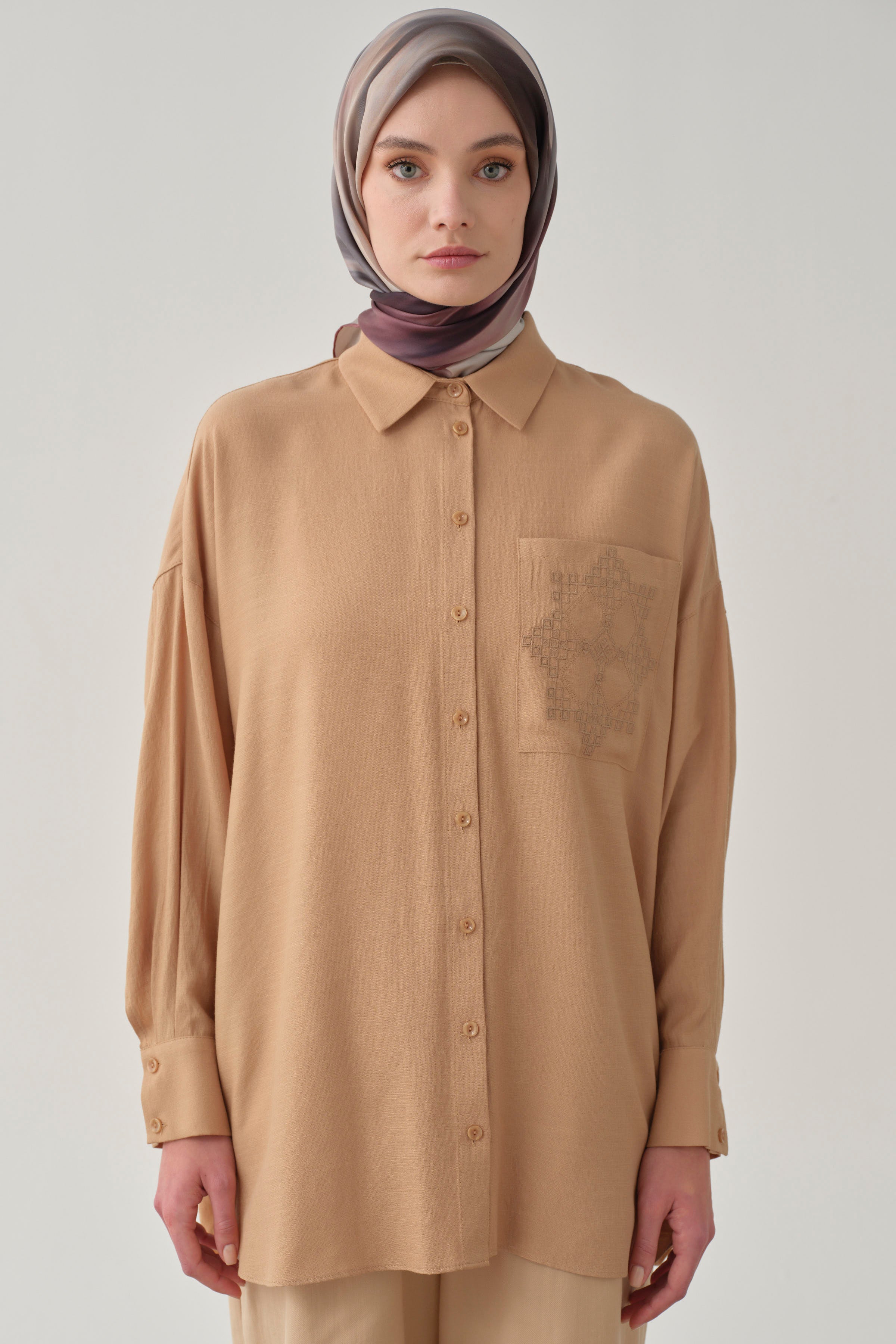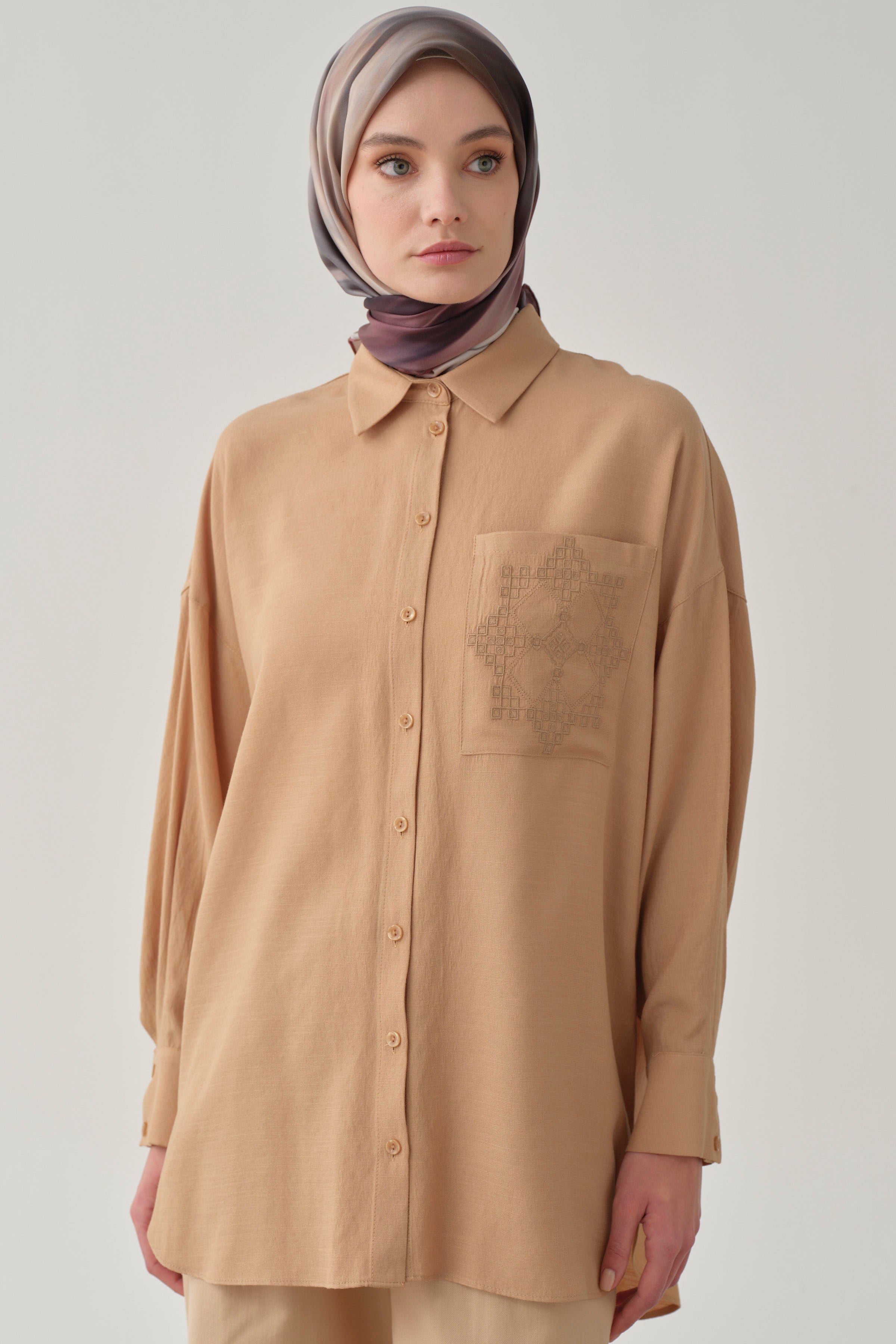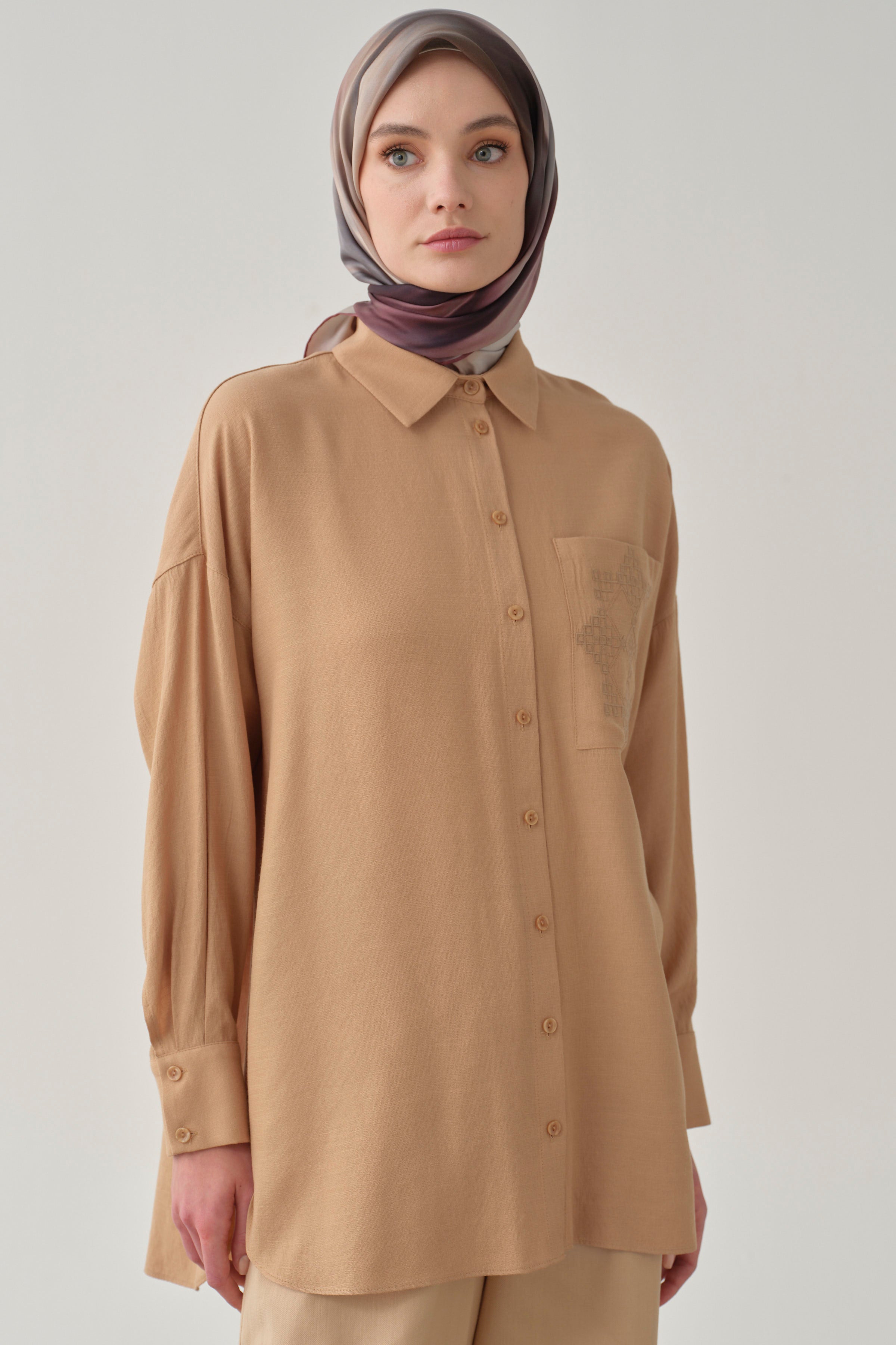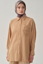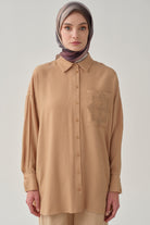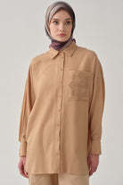 Chemise avec poche brodée - Beige