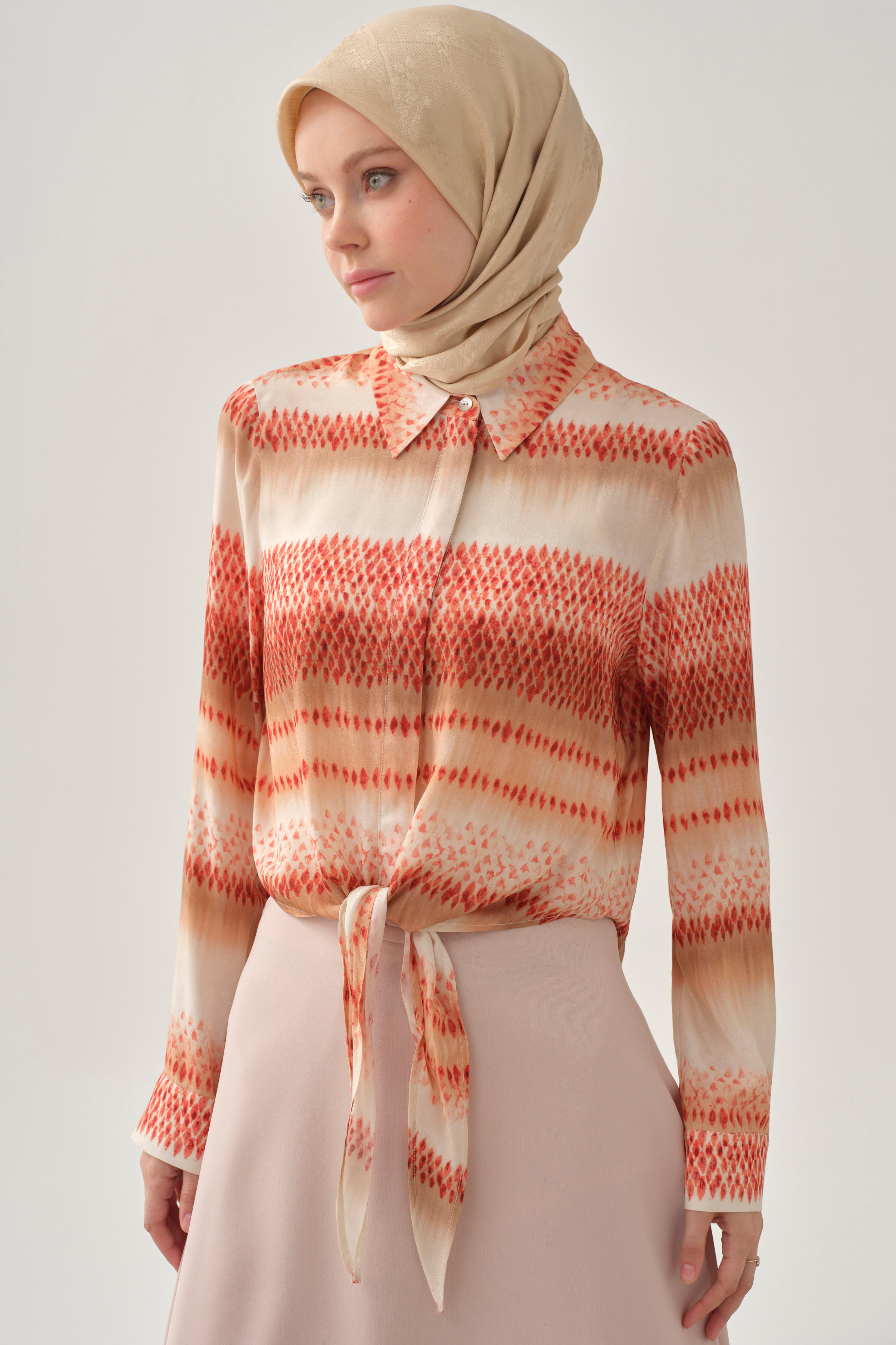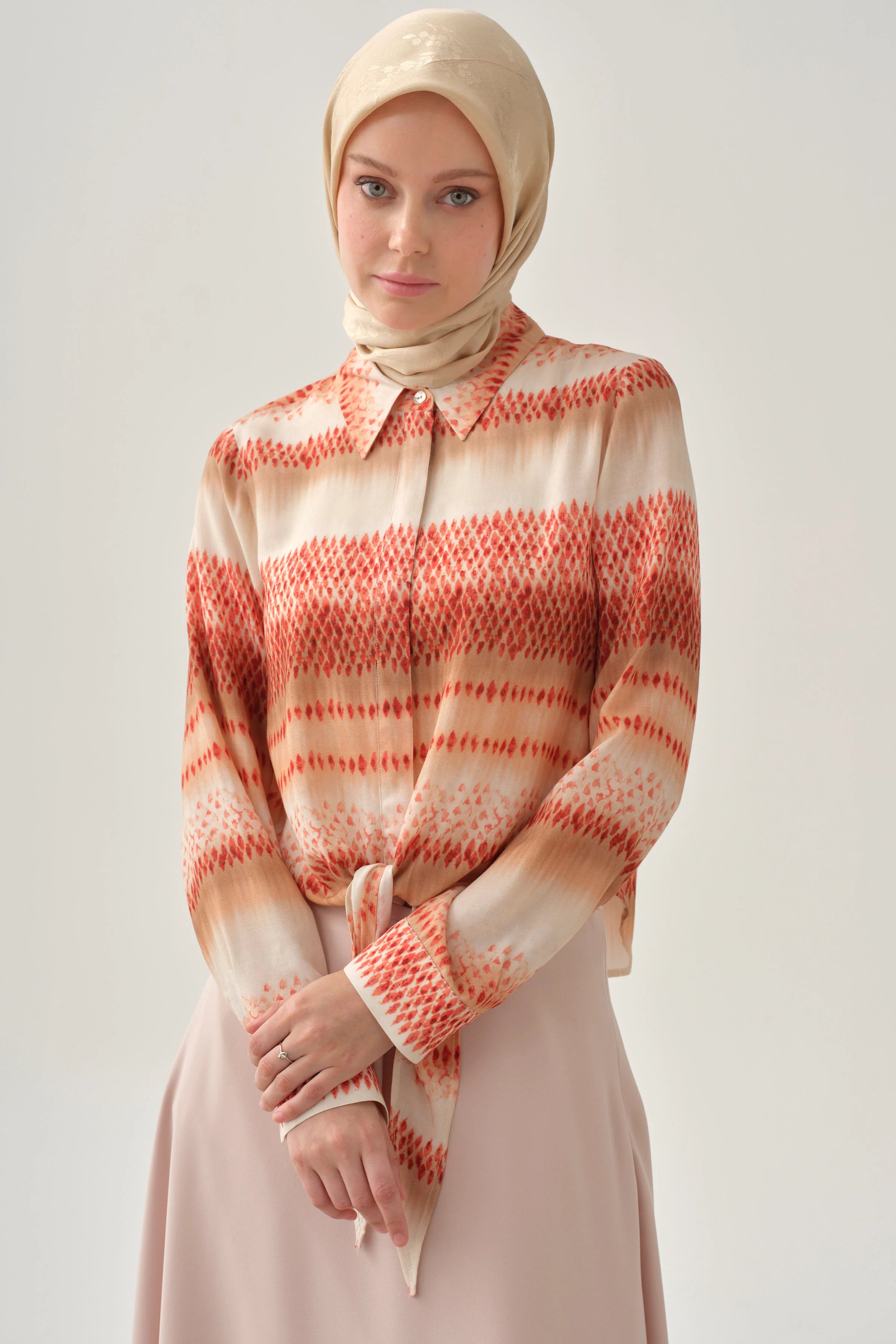 Chemise courte à motif dégradé - Corail