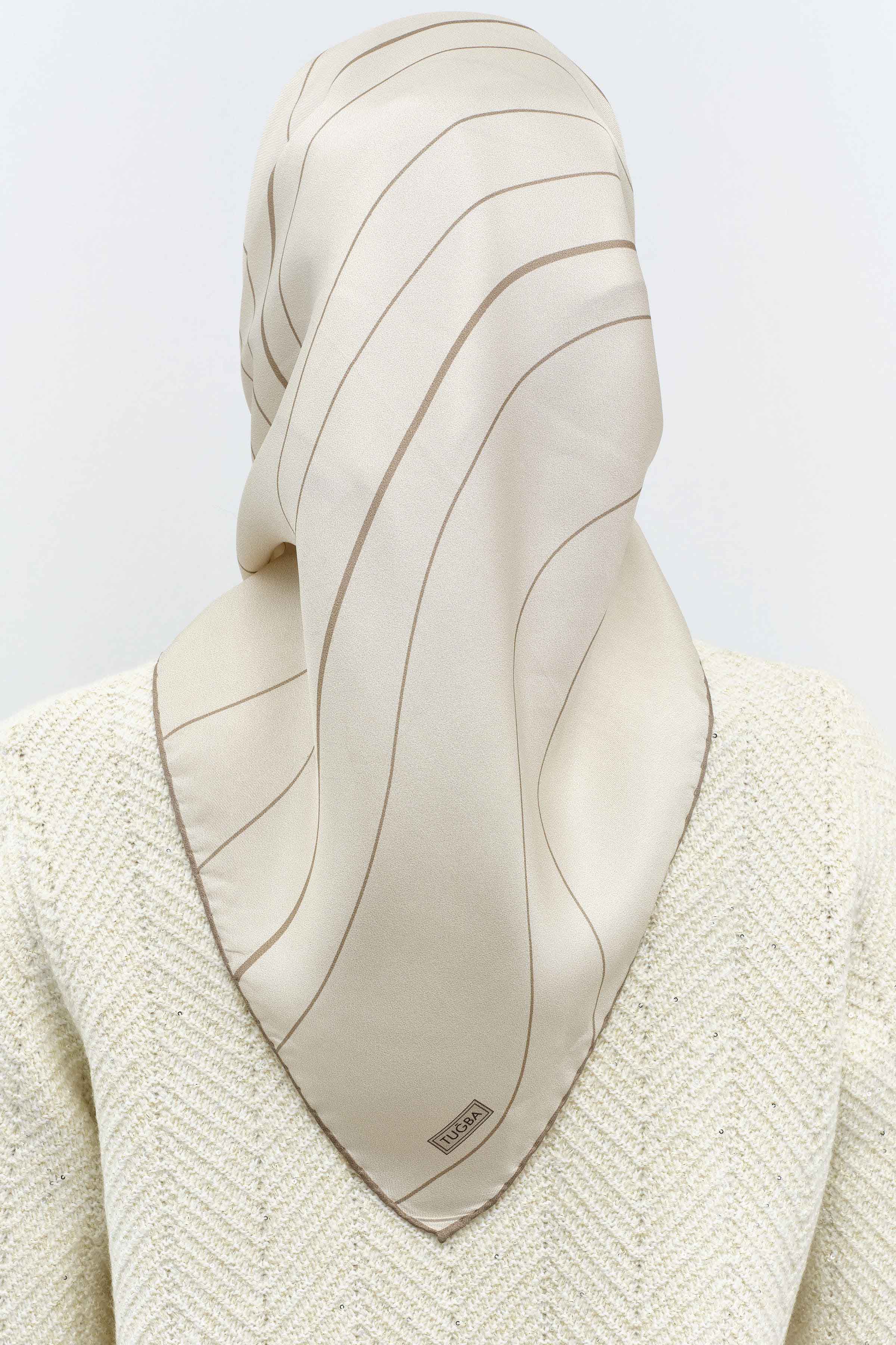 Écharpe en soie twill à motif marbré - Beige