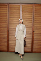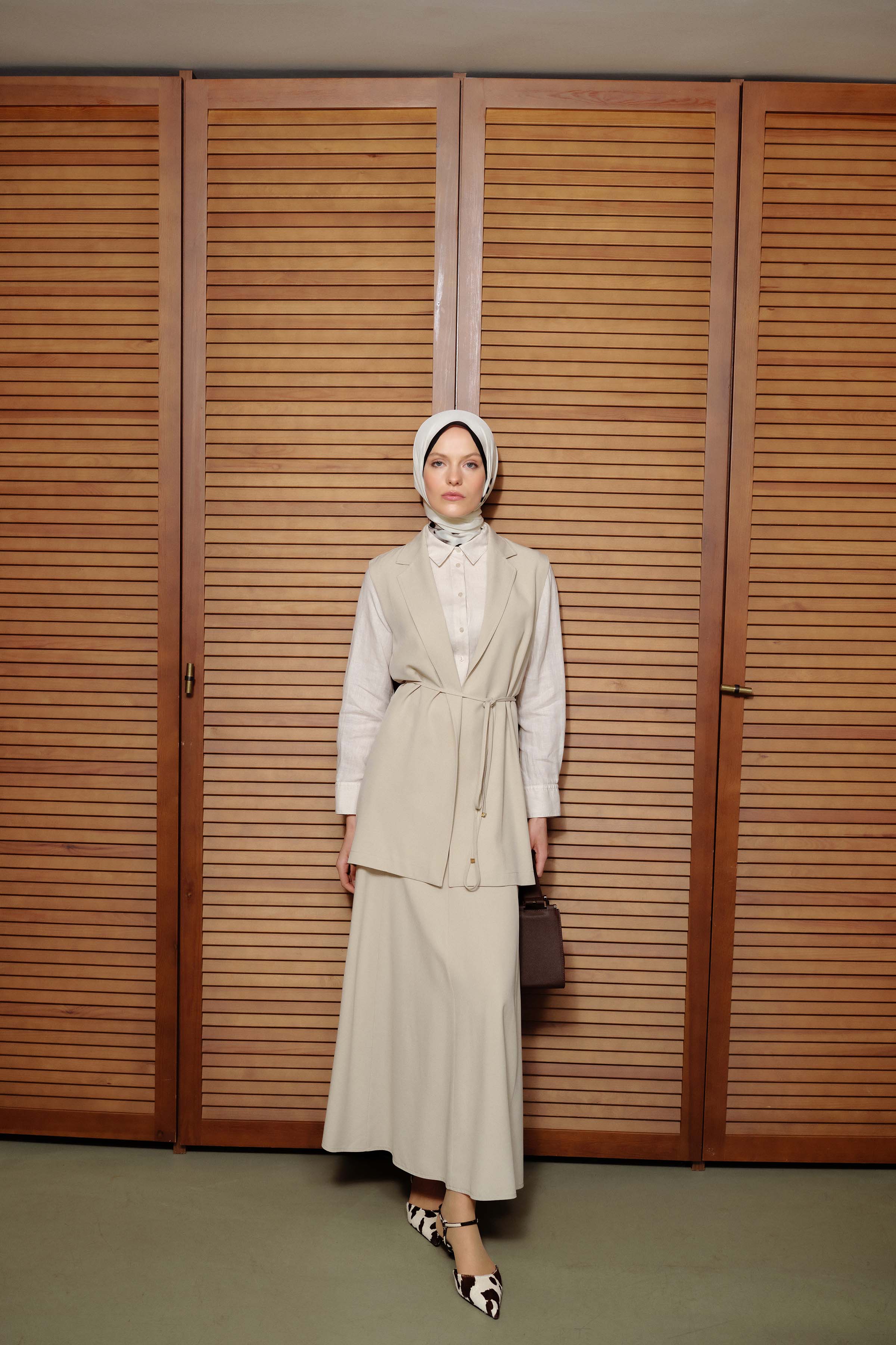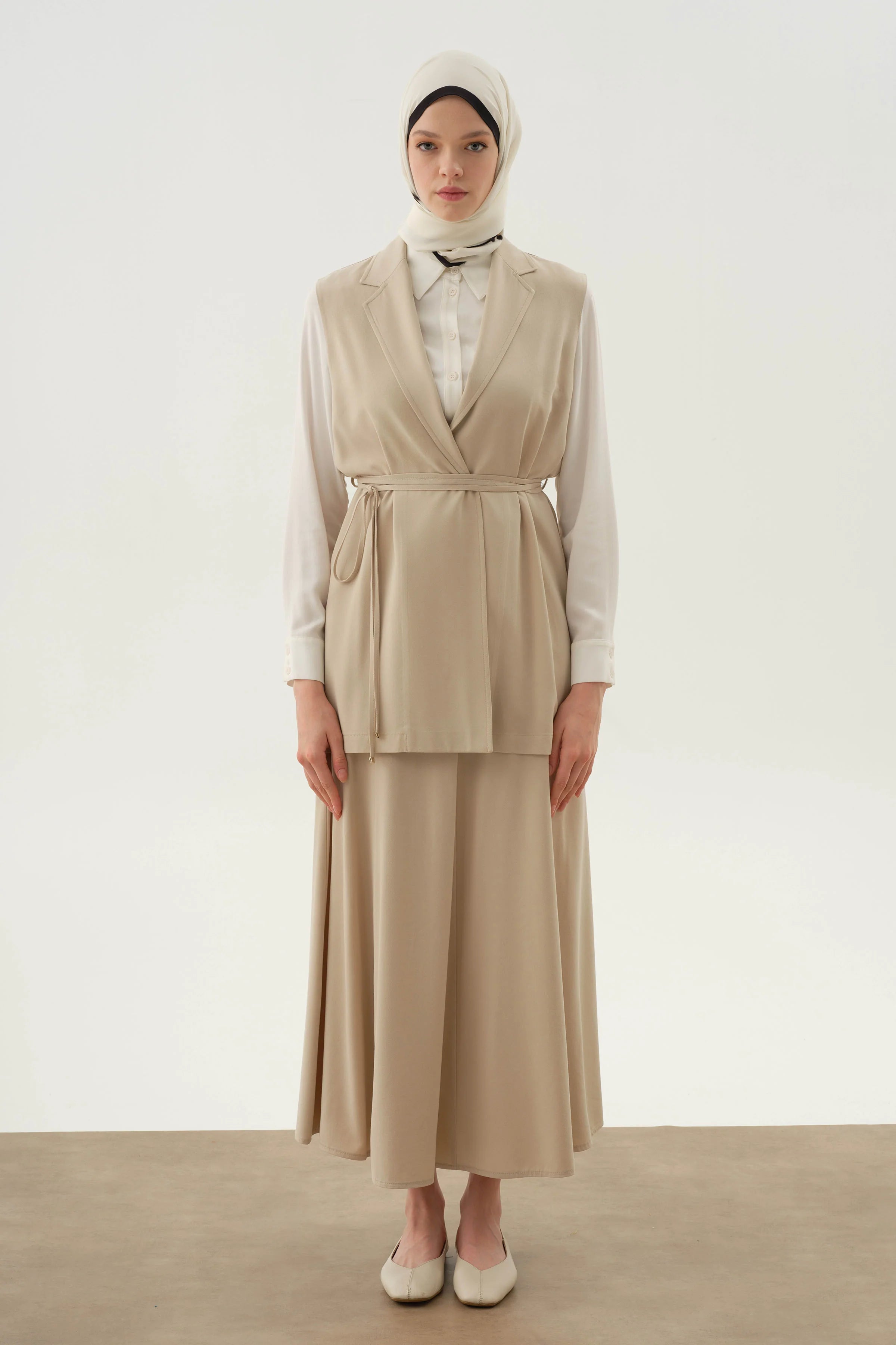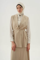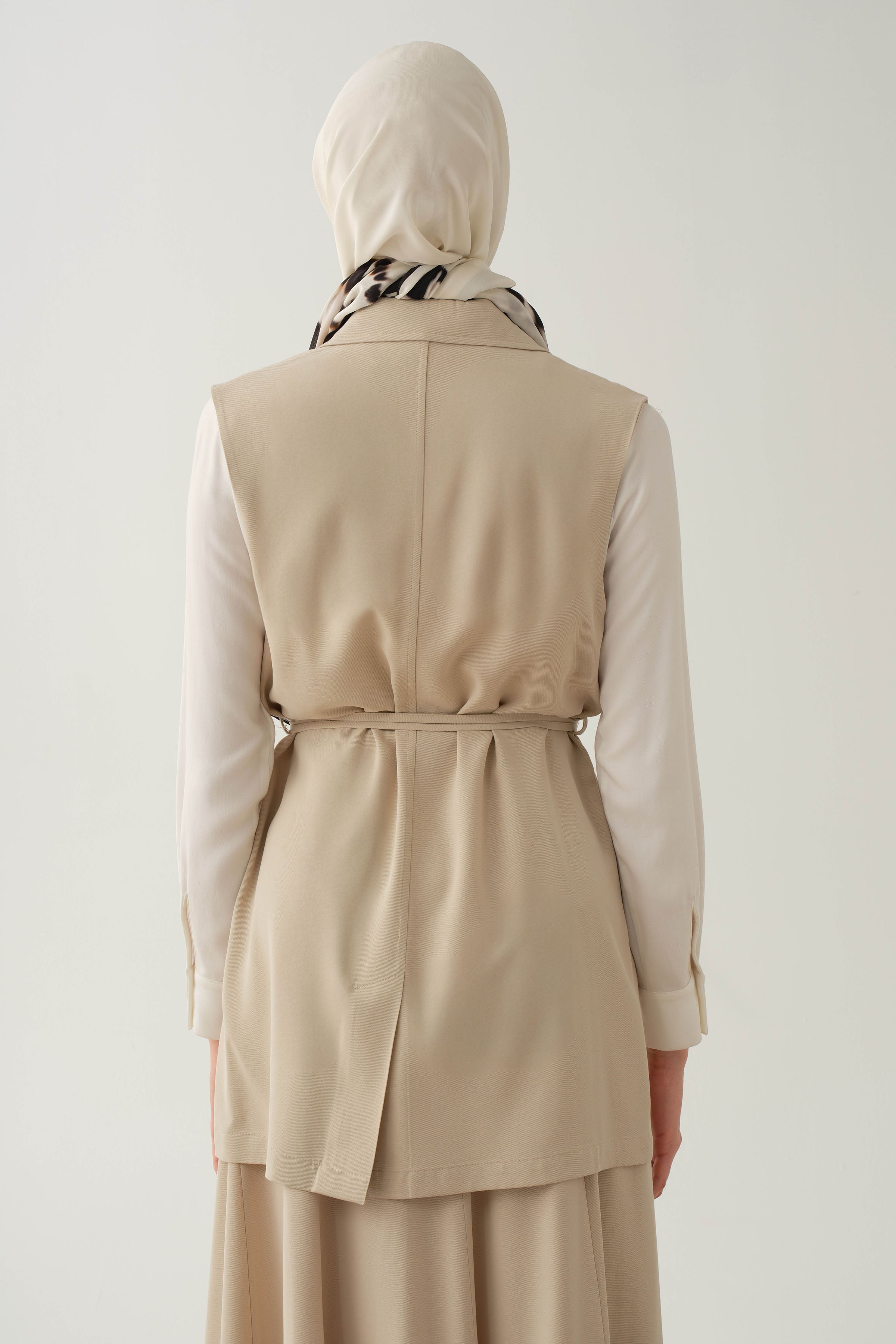 Gilet ceinturé avec bordure double épaisseur - Beige