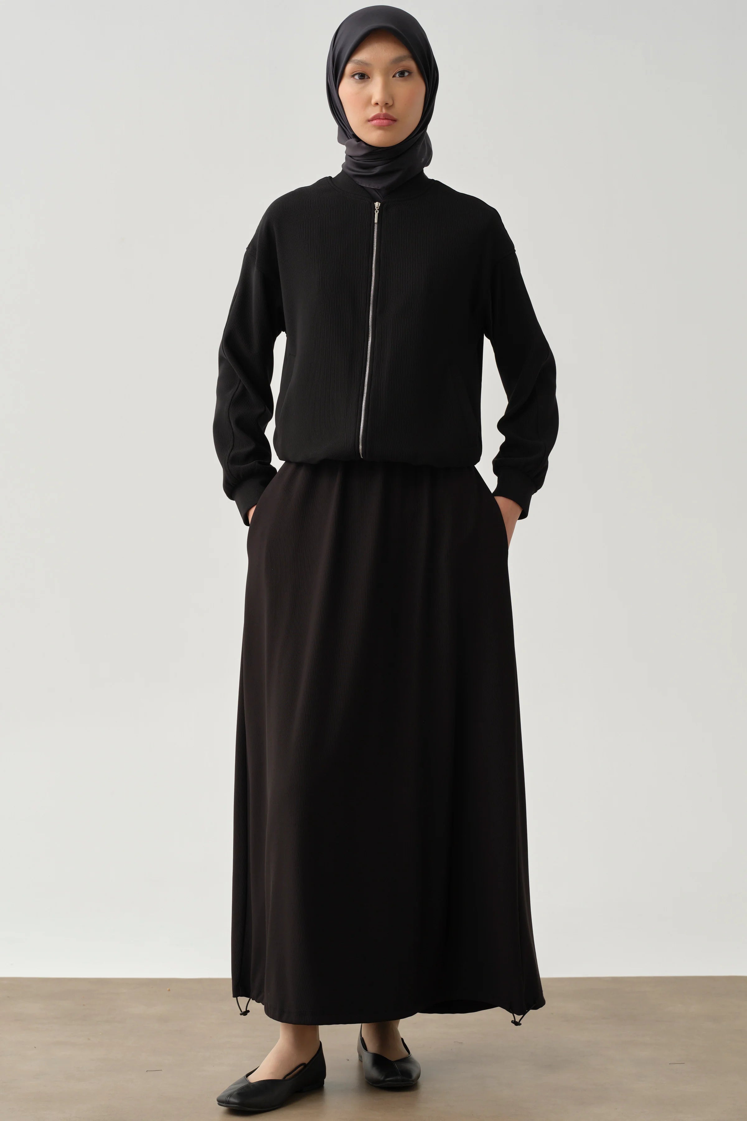 Jupe en maille à taille élastiquée avec poches cachées - Noir