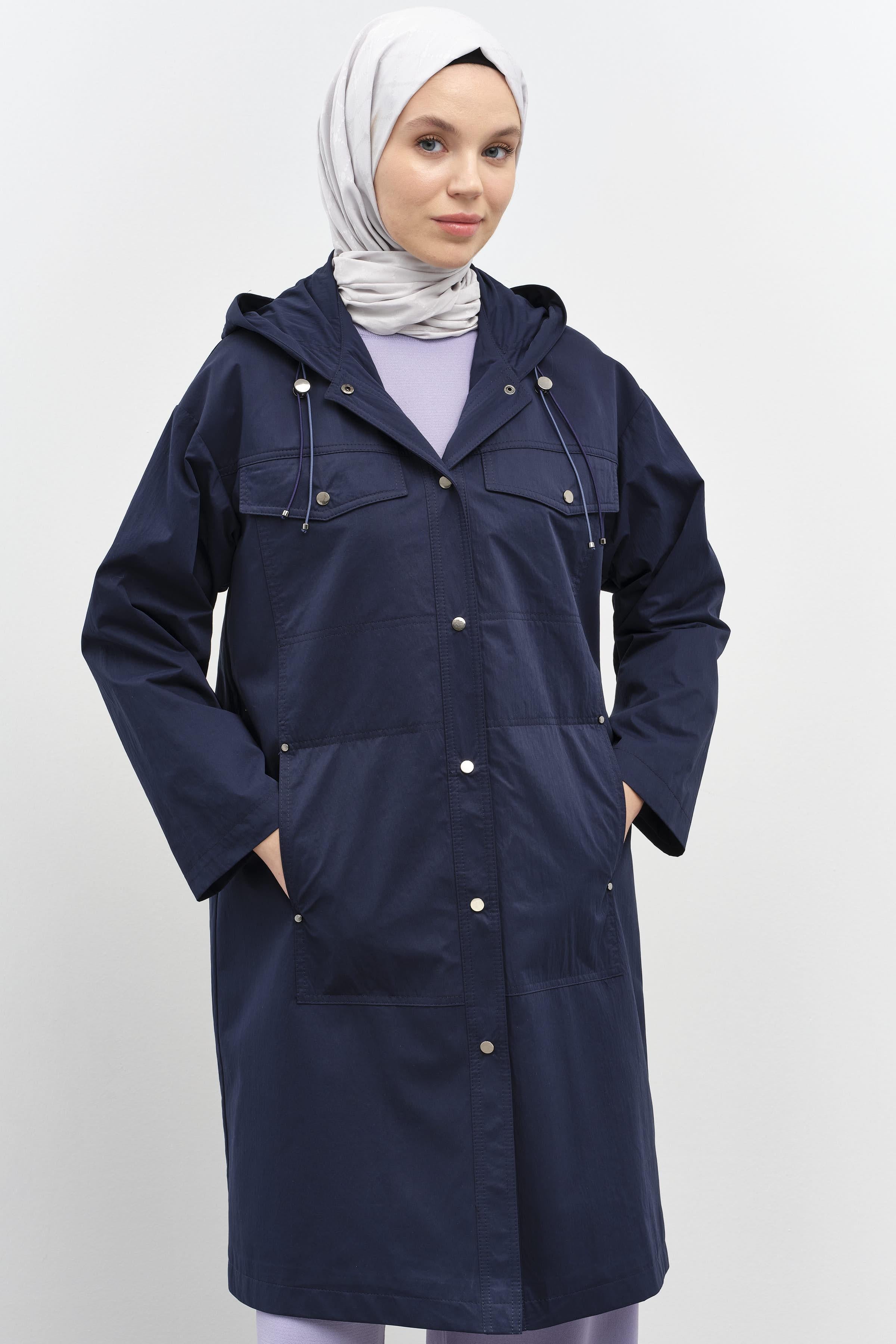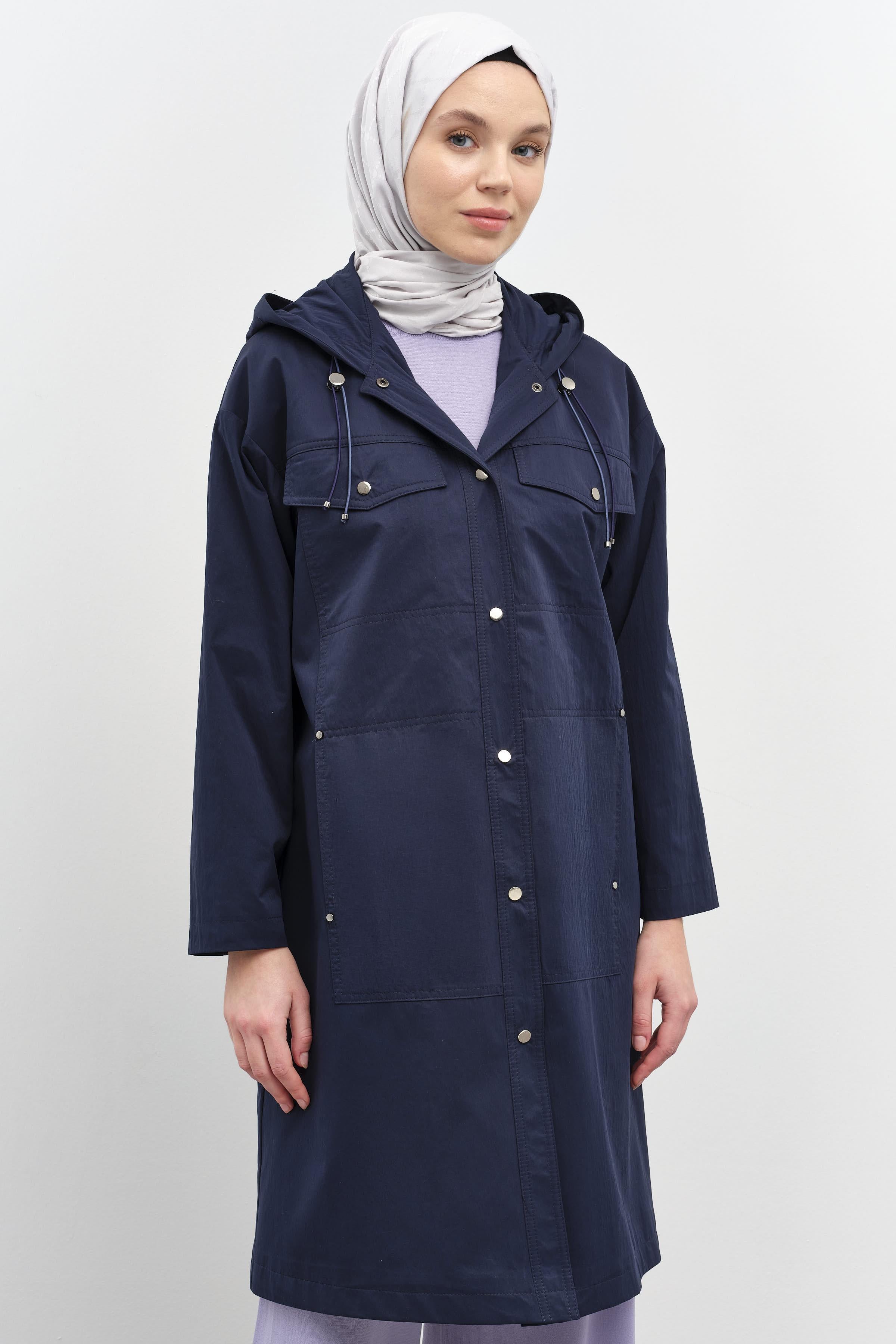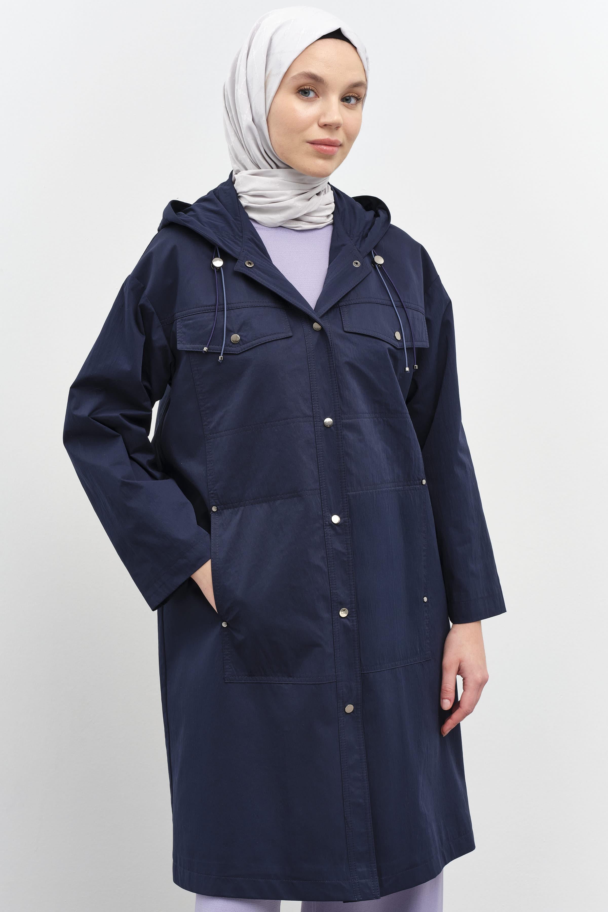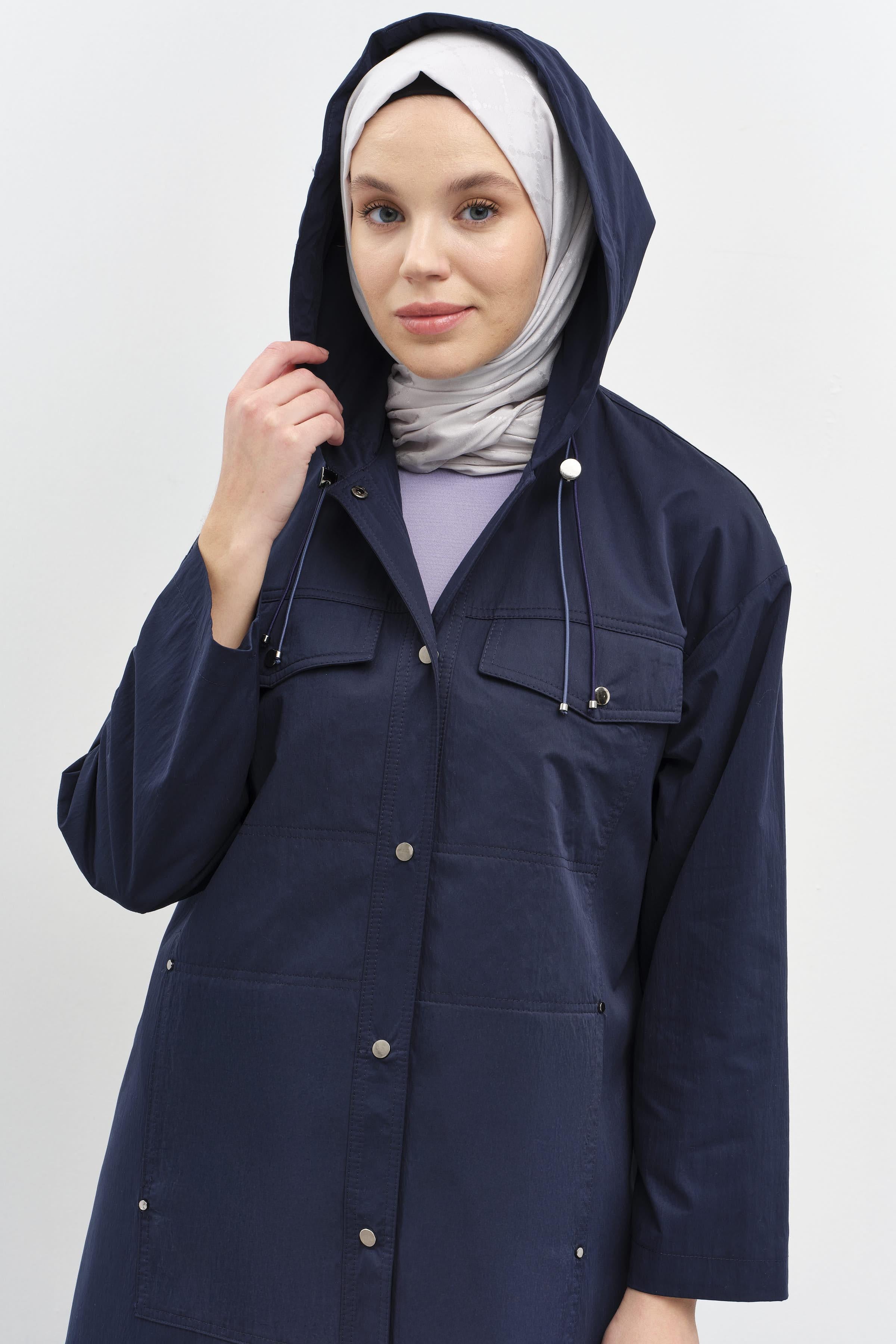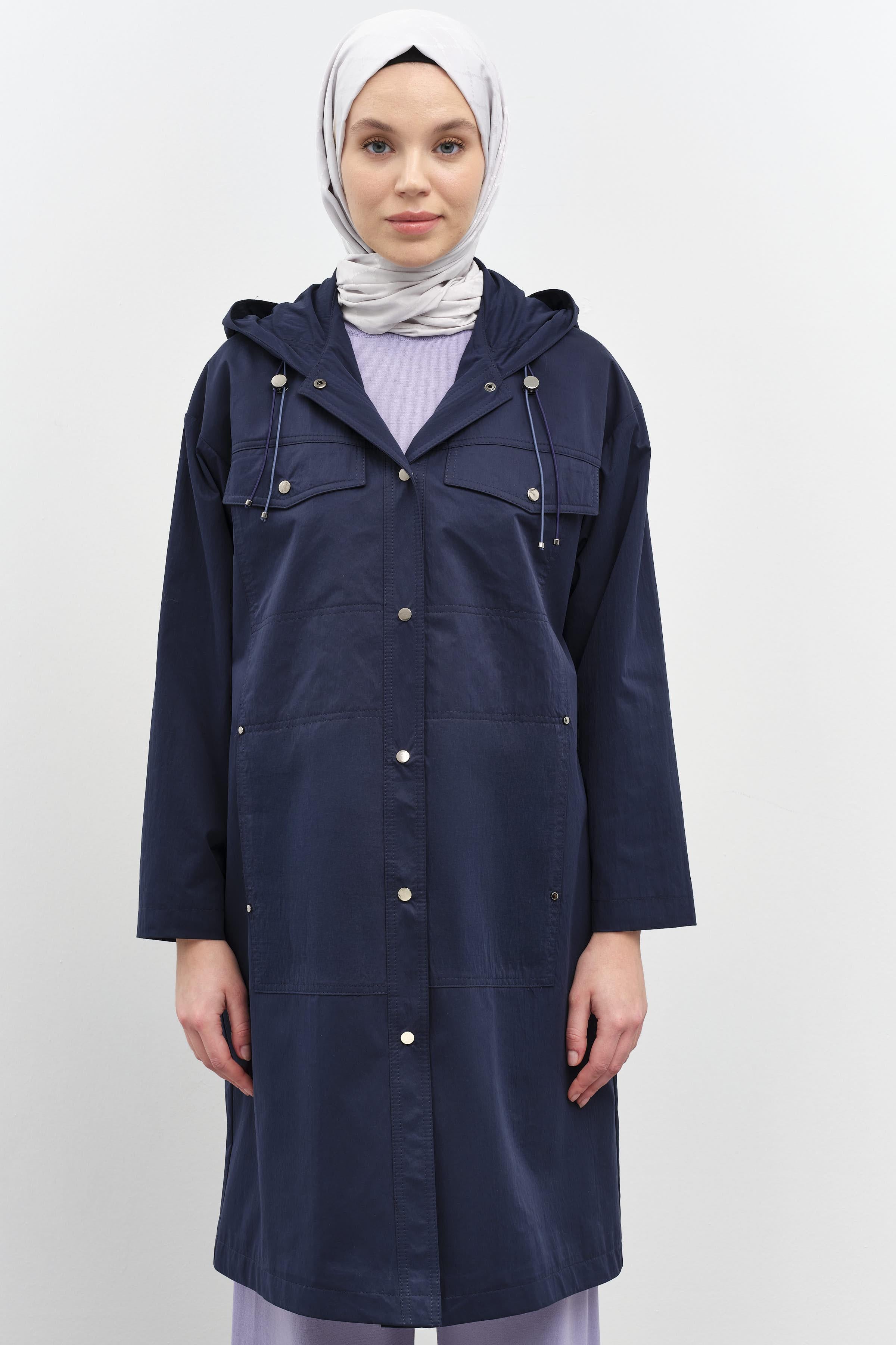 Manteau à capuche avec fermeture à bouton-pression - Blue marine
