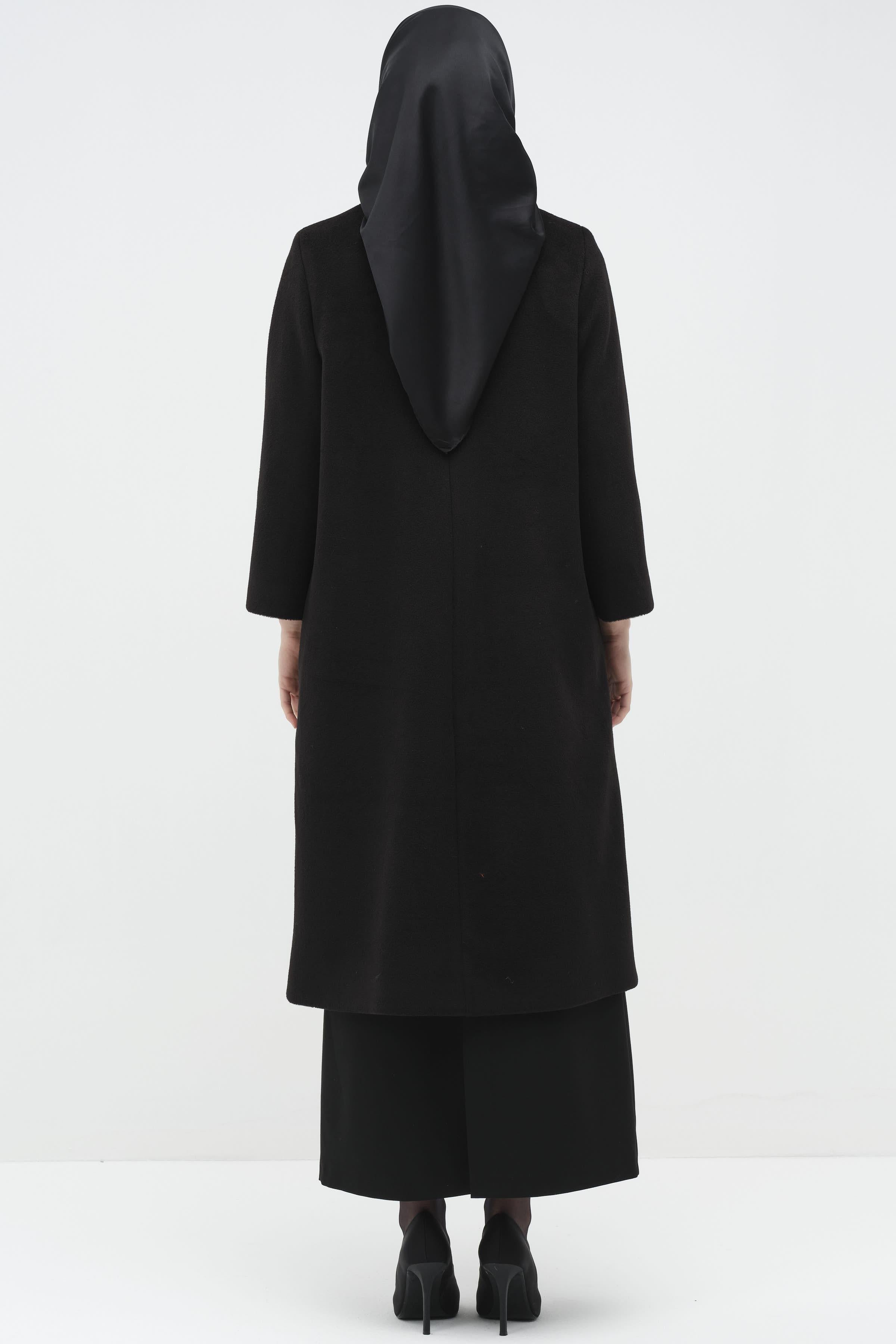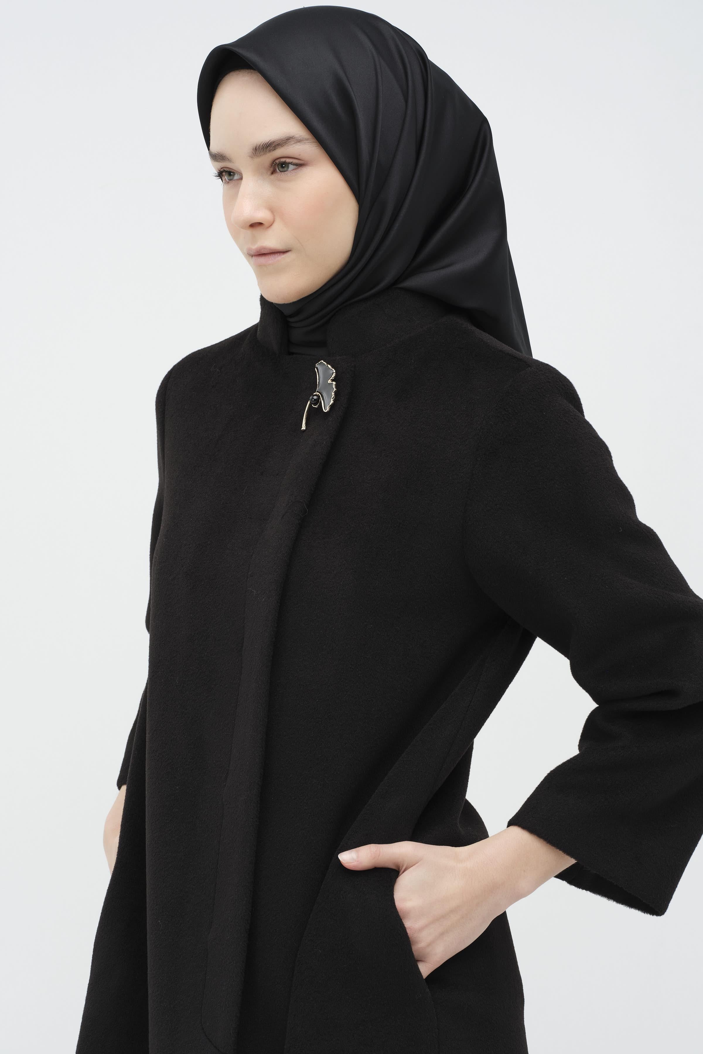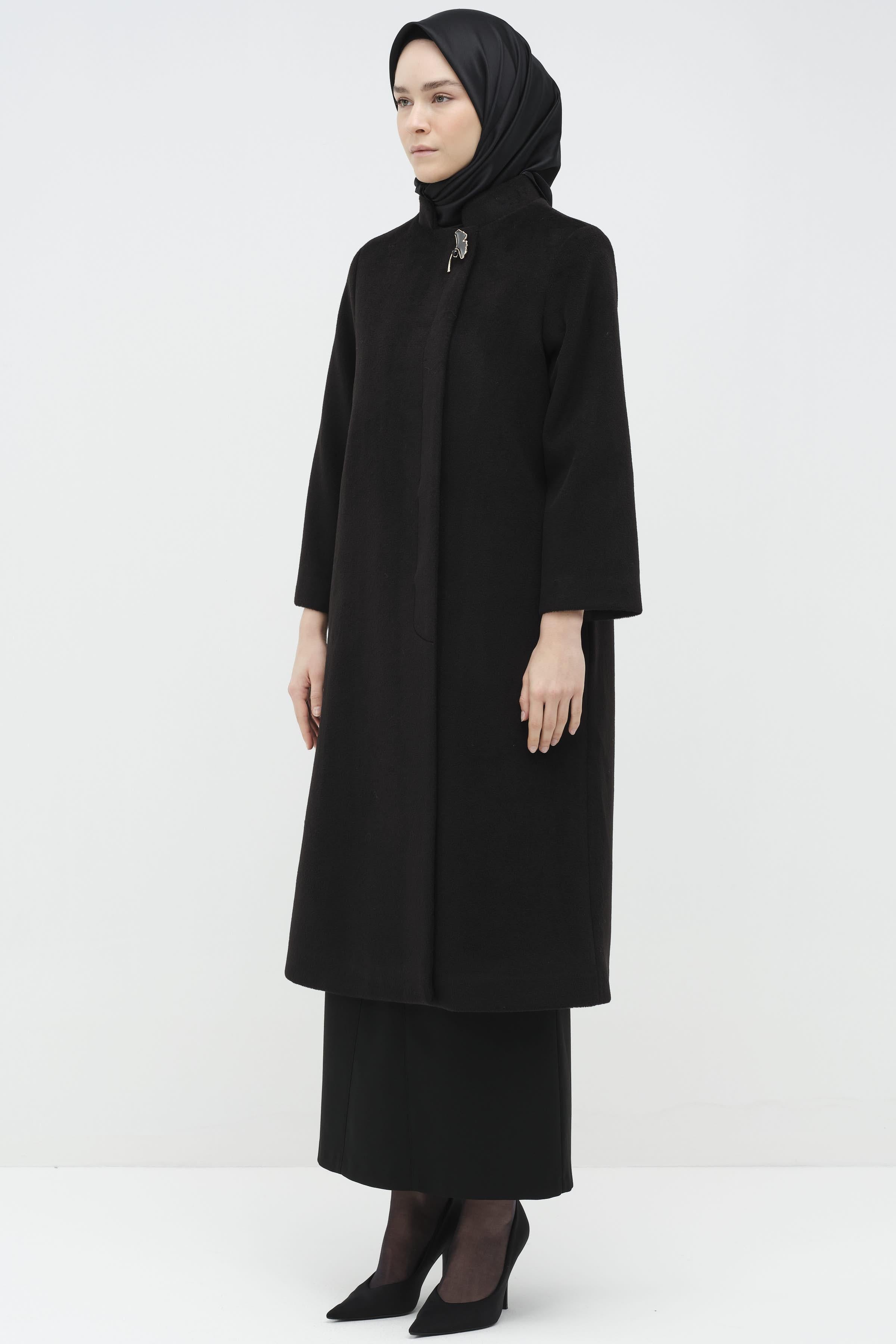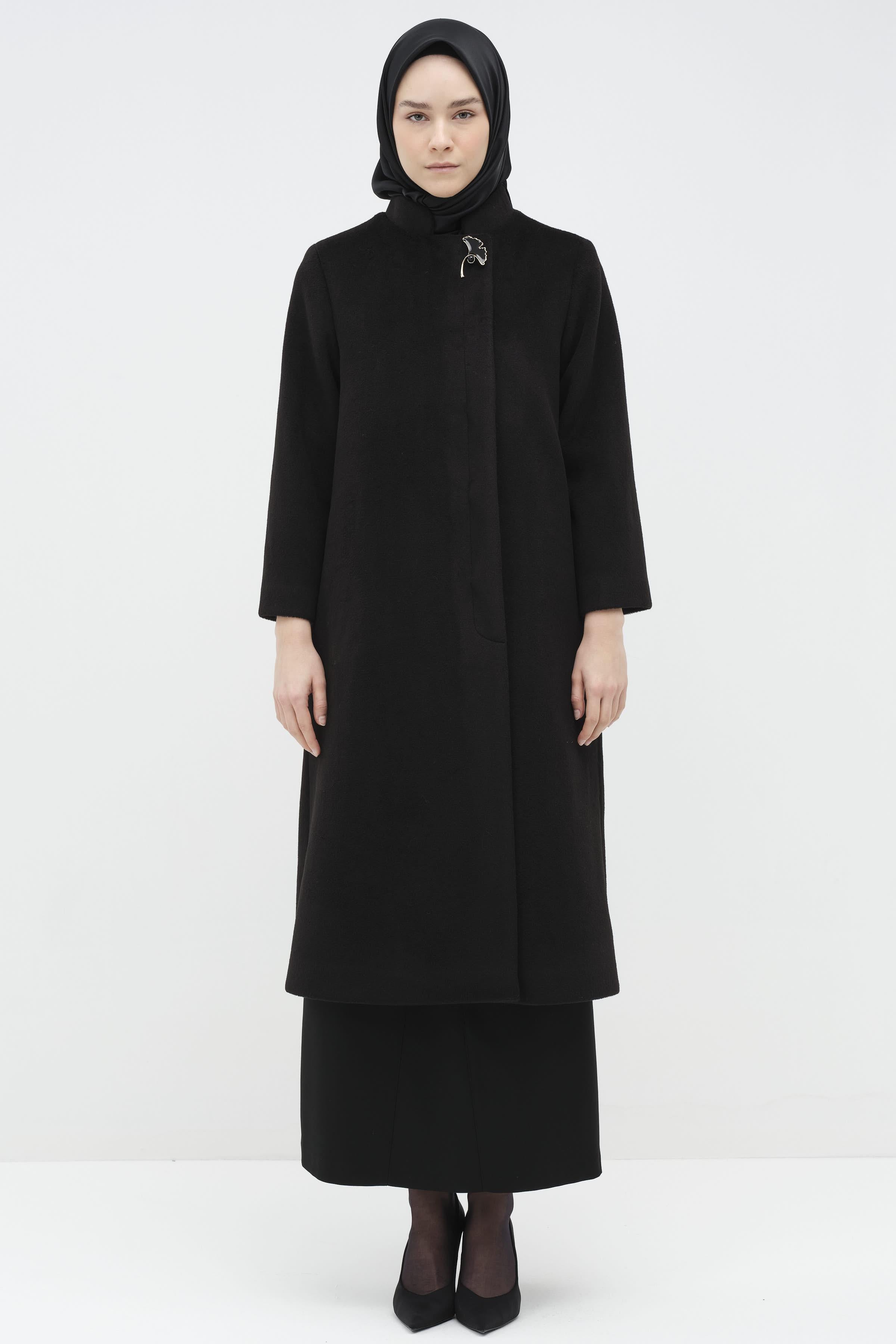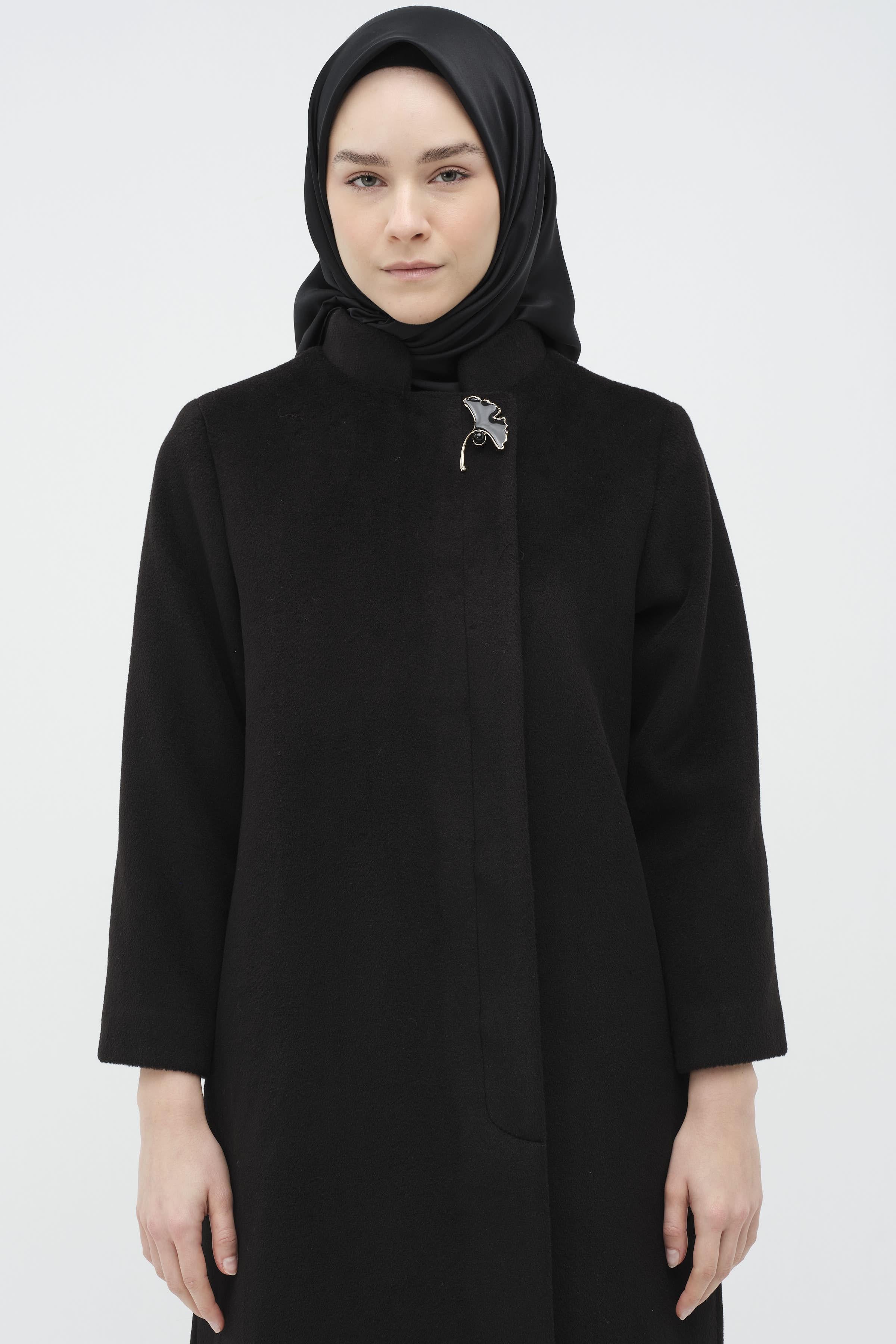 Manteau avec broche et patte d'oie cachée - Noir
