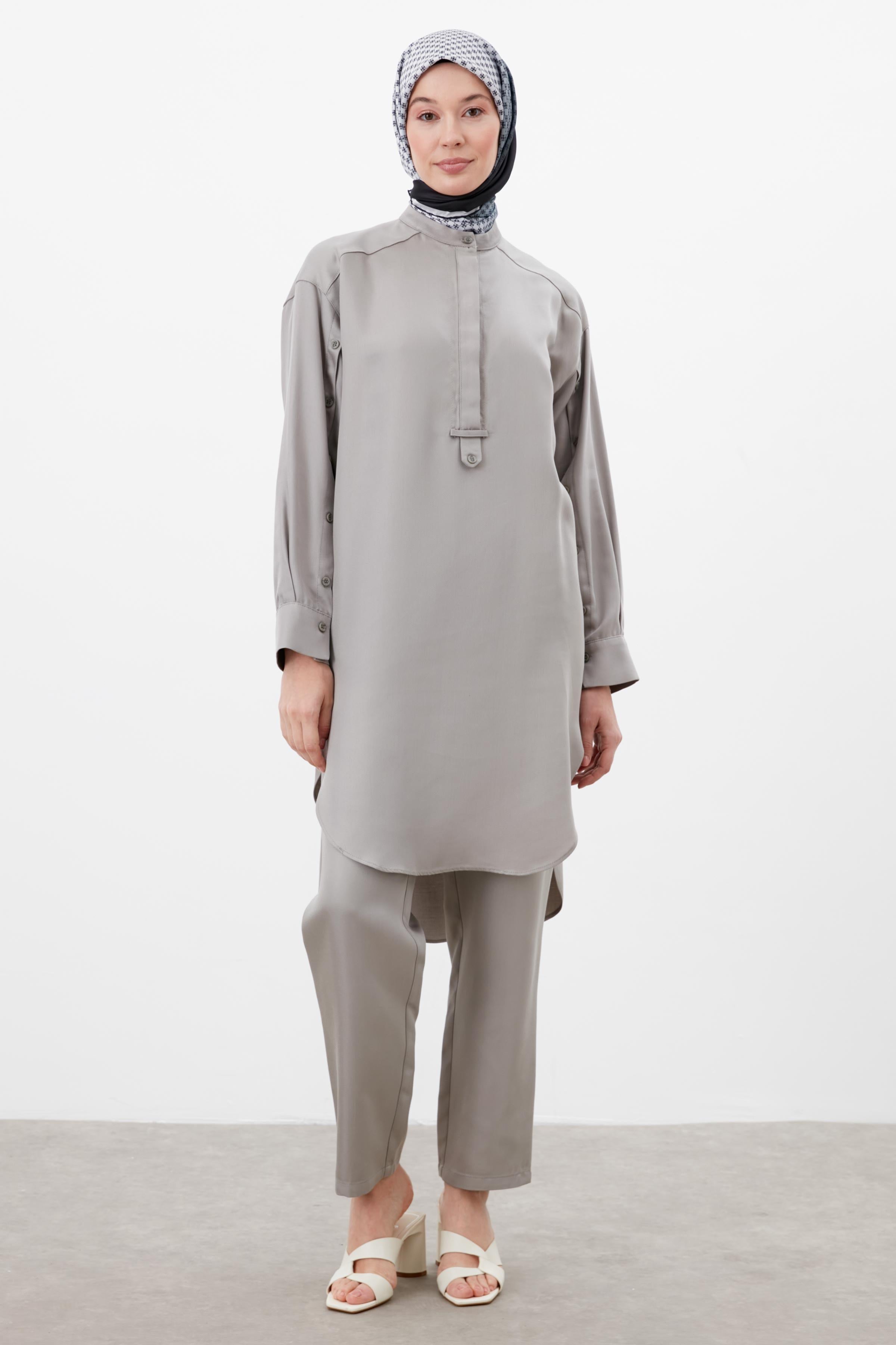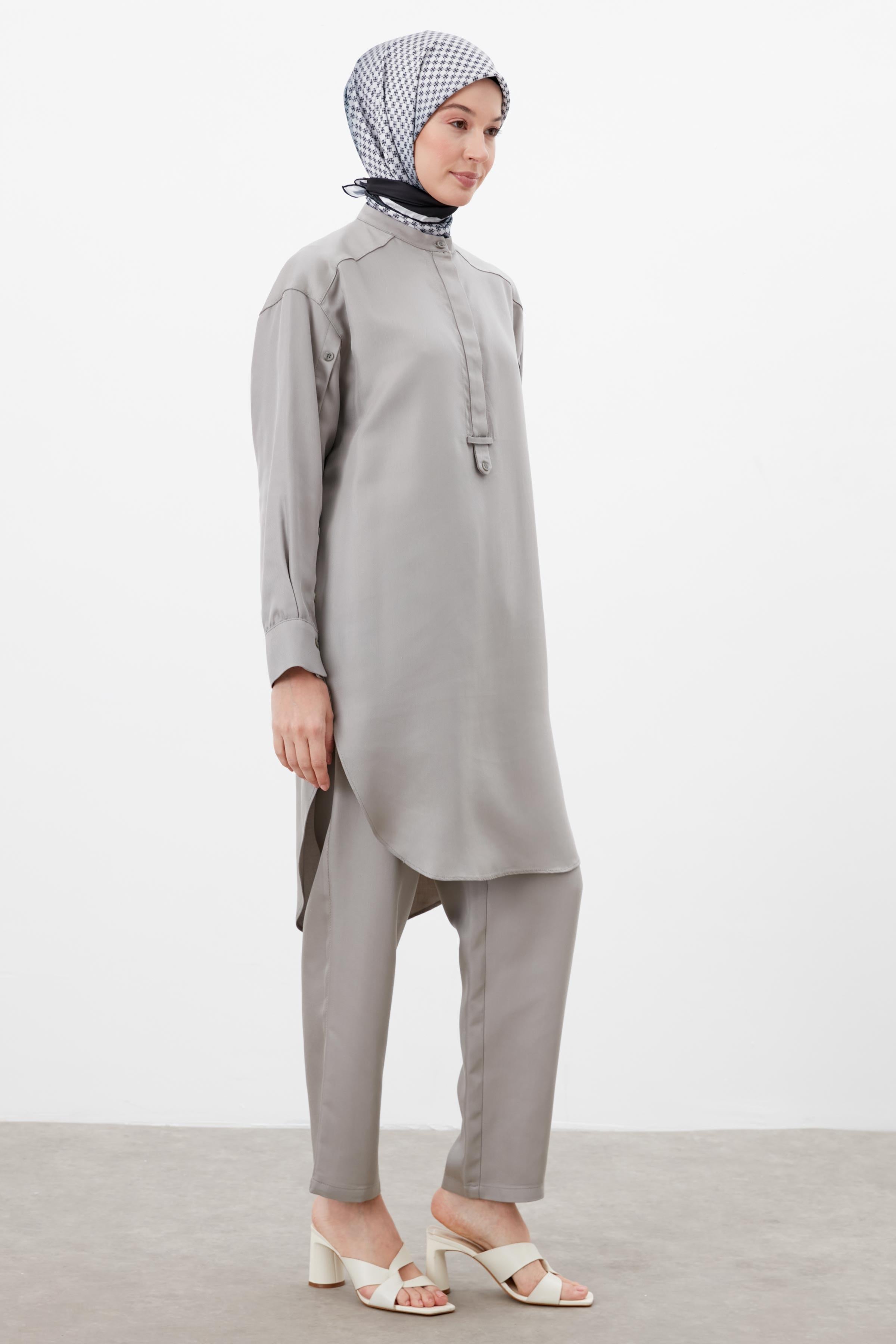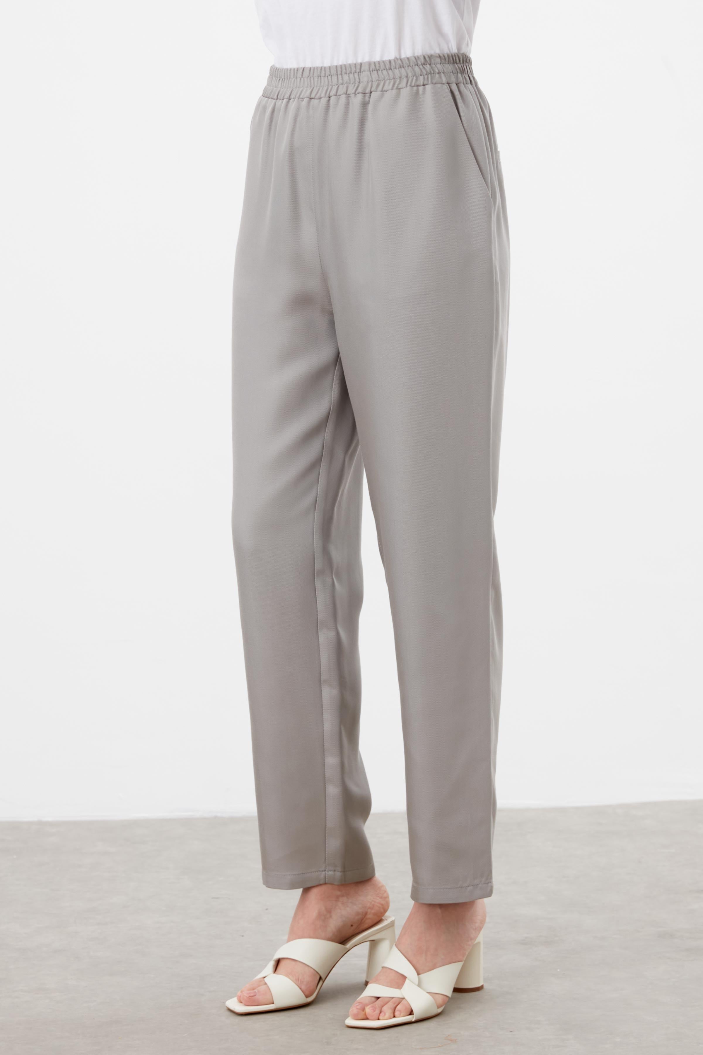 Pantalon carotte à taille élastique - Gris