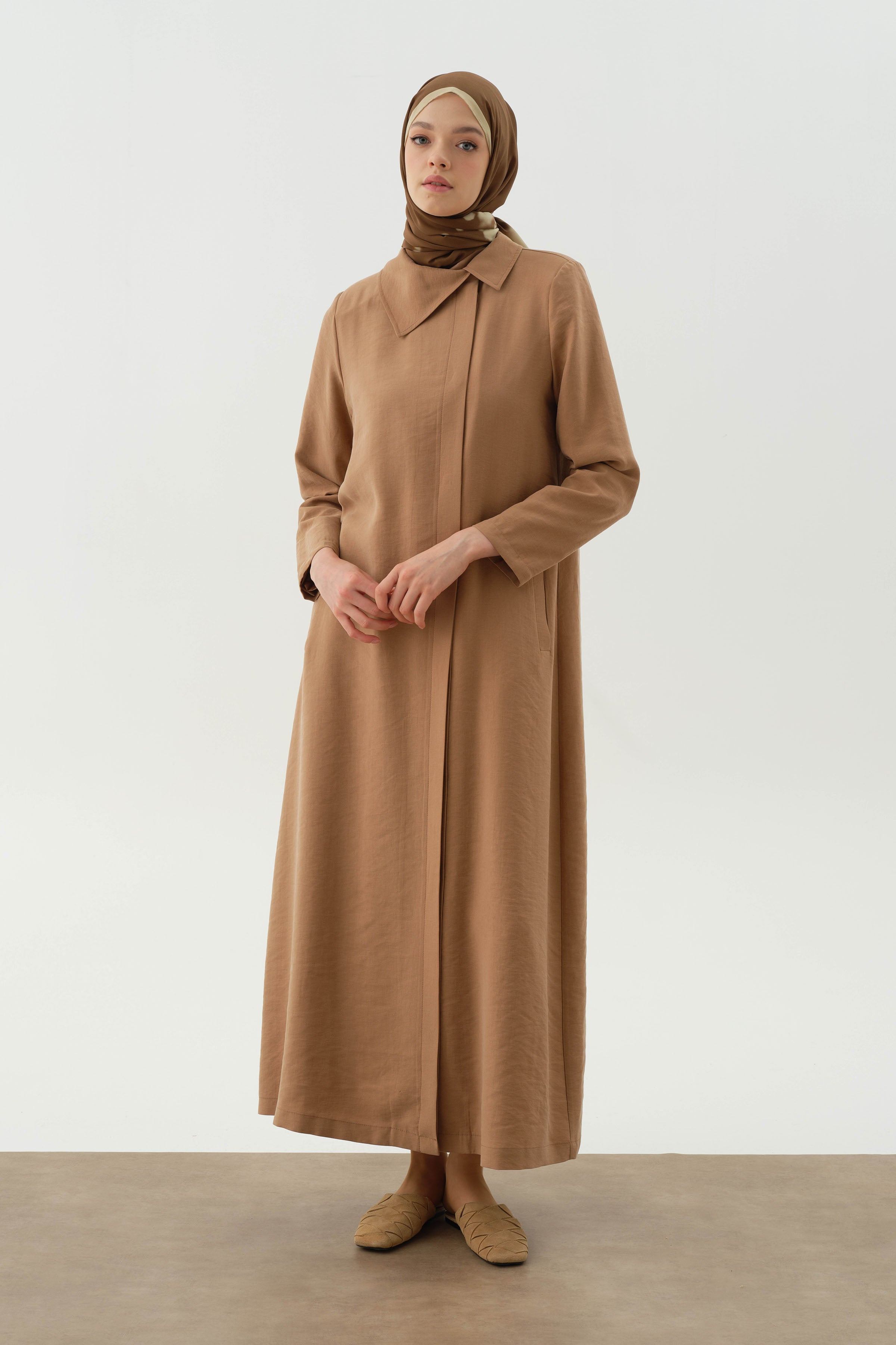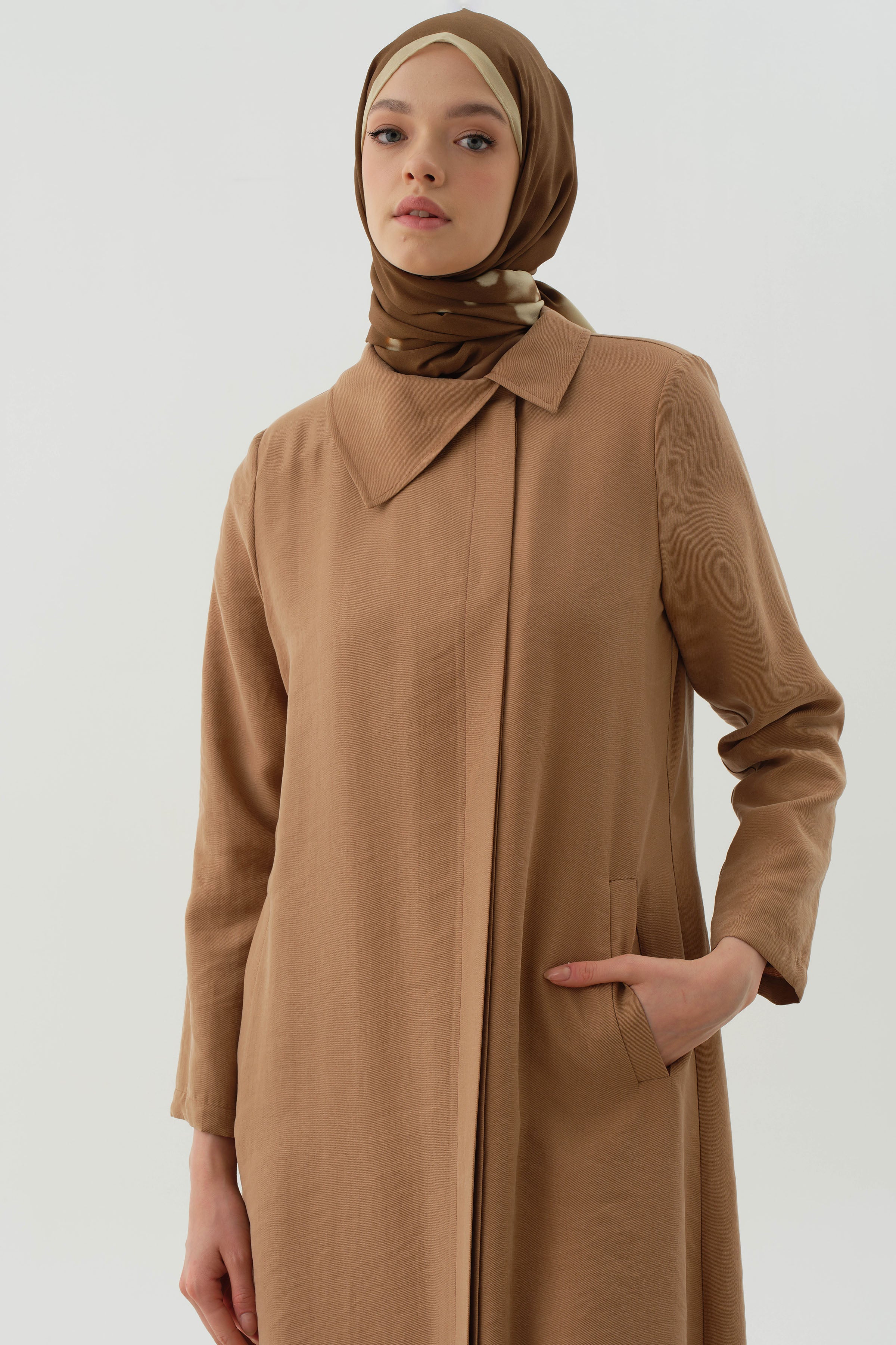 Pardessus avec fermeture à patte cachée sur le côté - Noisette