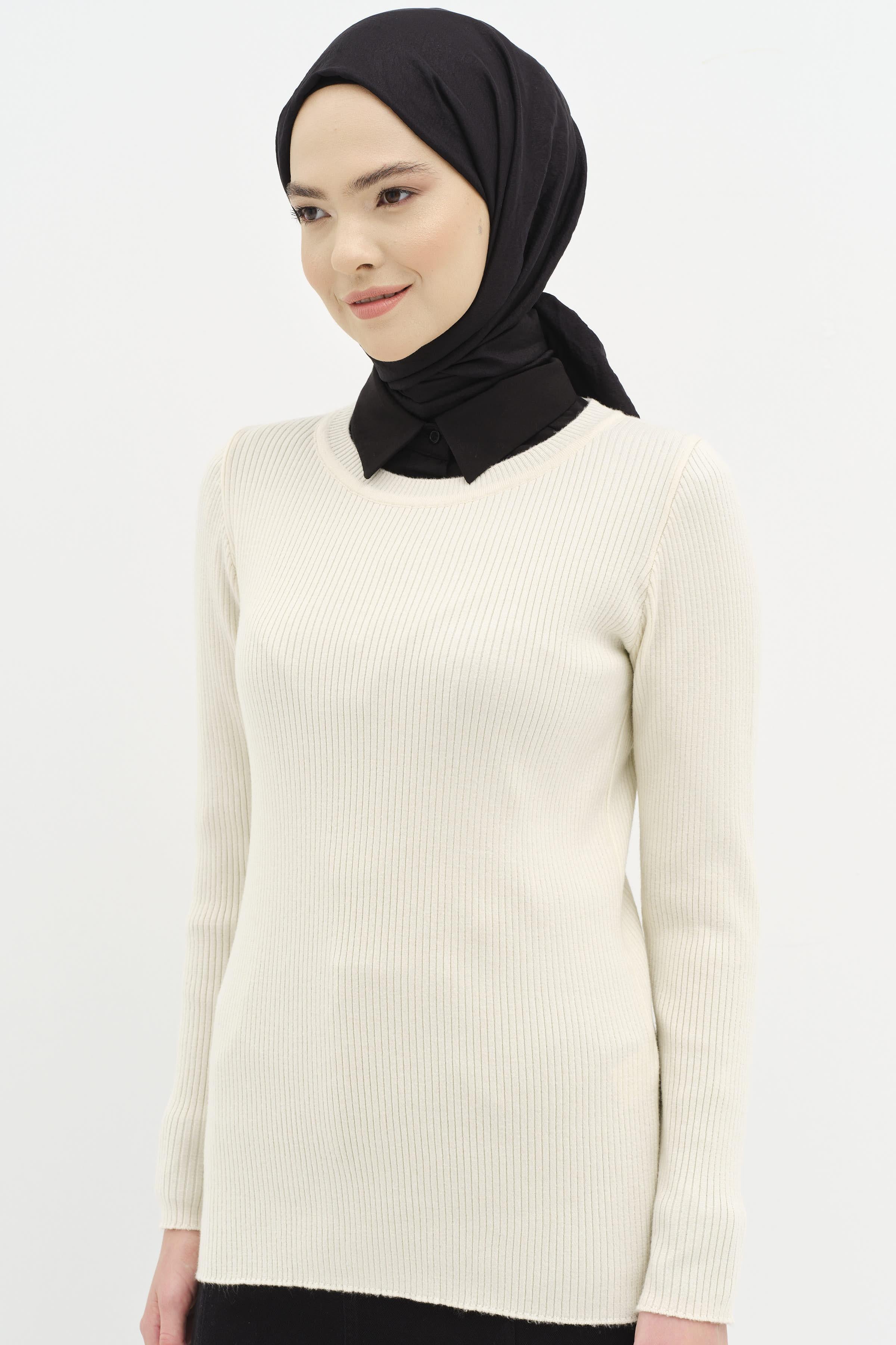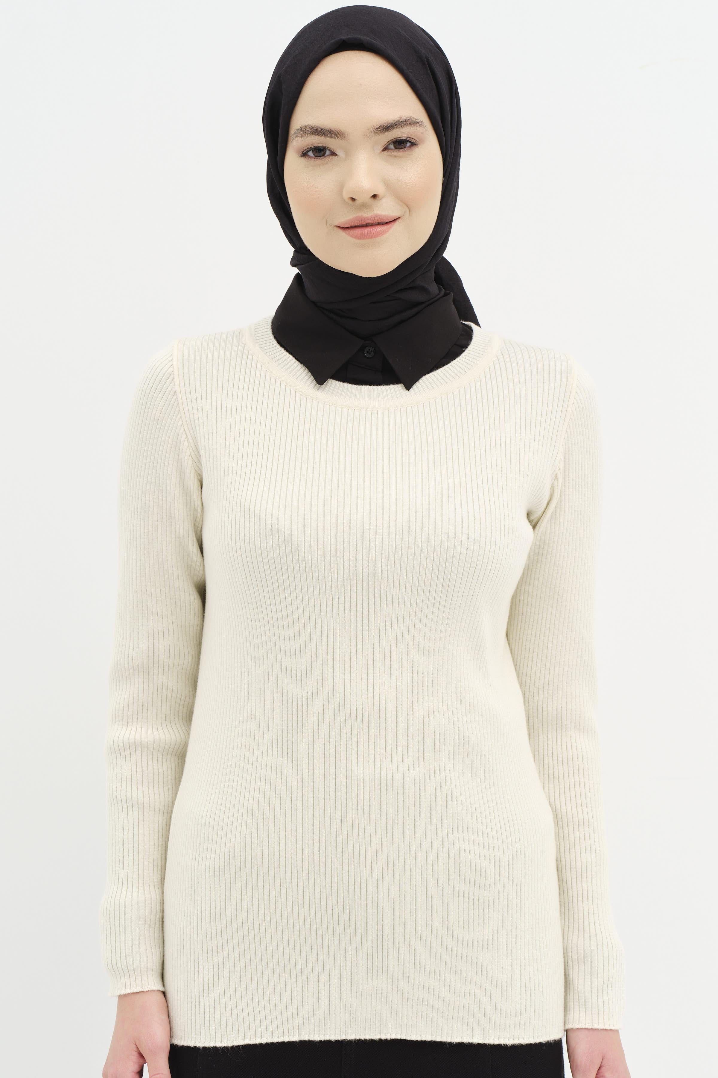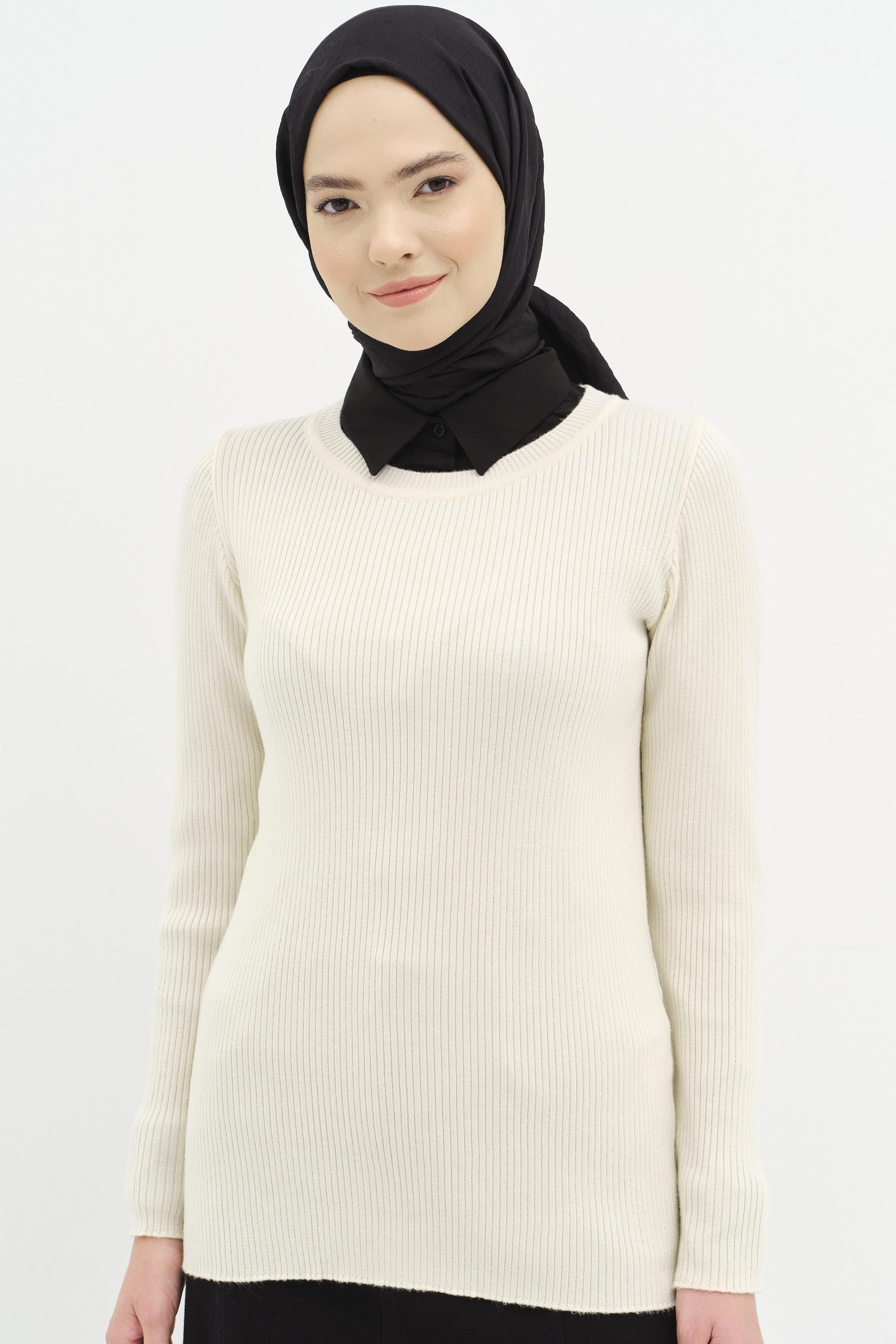 Pull en tricot côtelé à col rond - Os