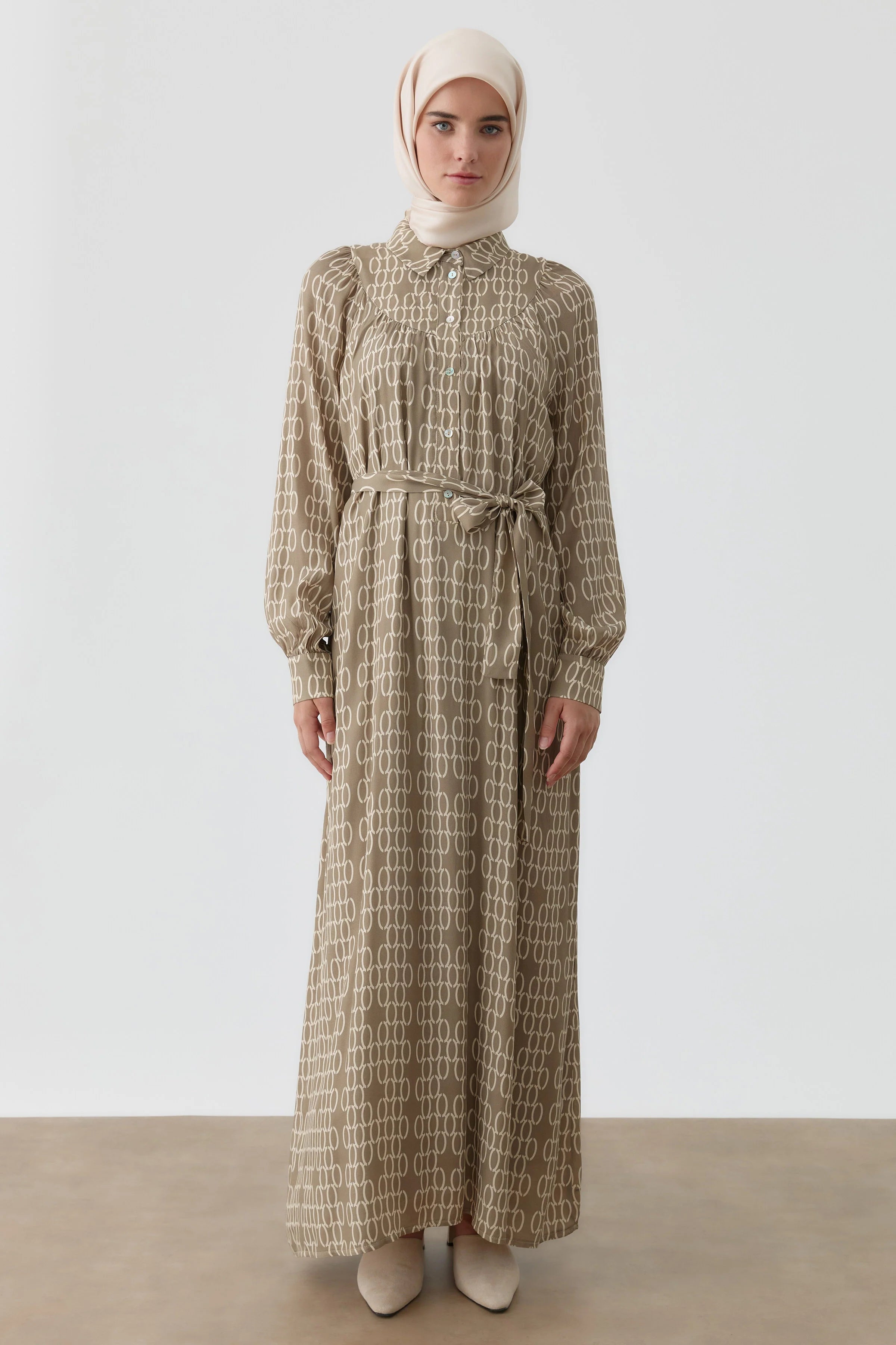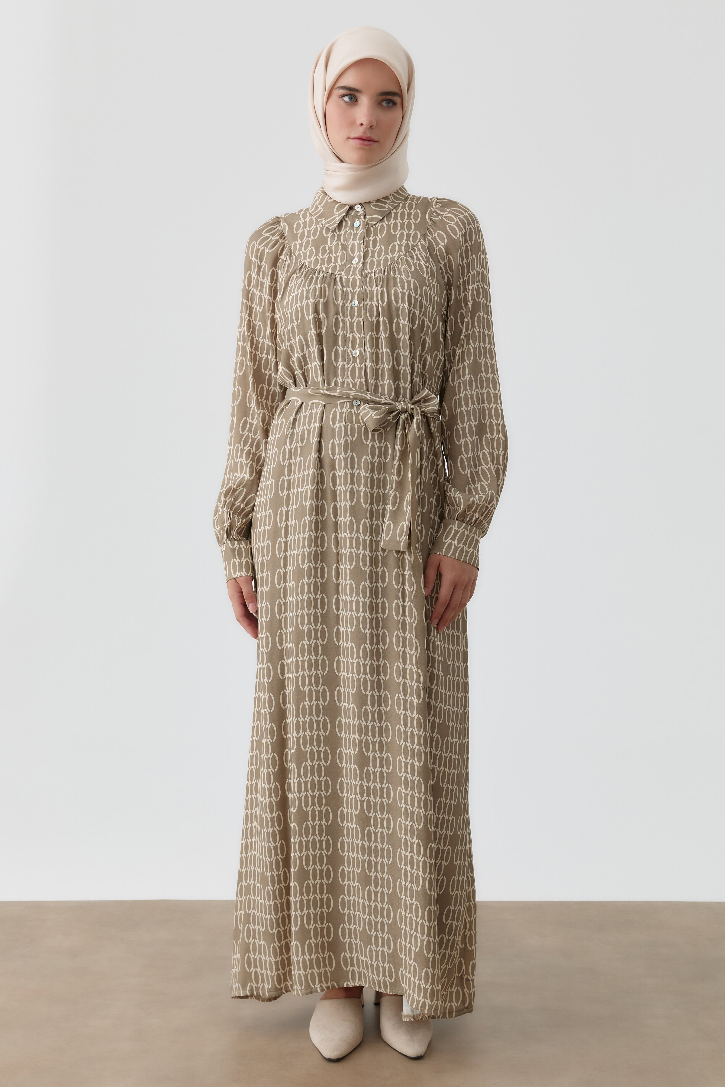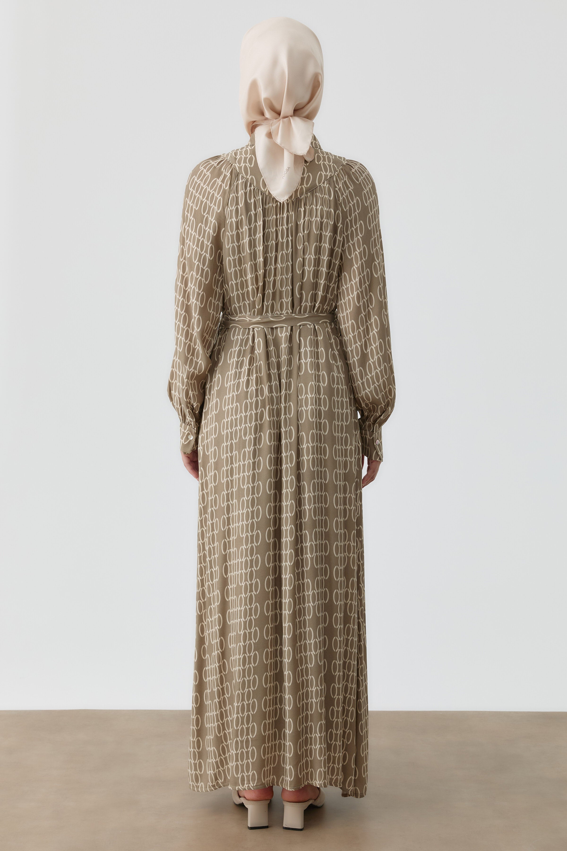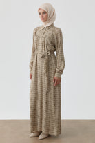 Robe à motif avec fronces et empiècement - Taupe