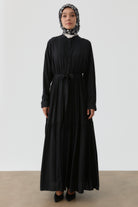 Robe à taille élastiquée avec plis nervurés - Noir