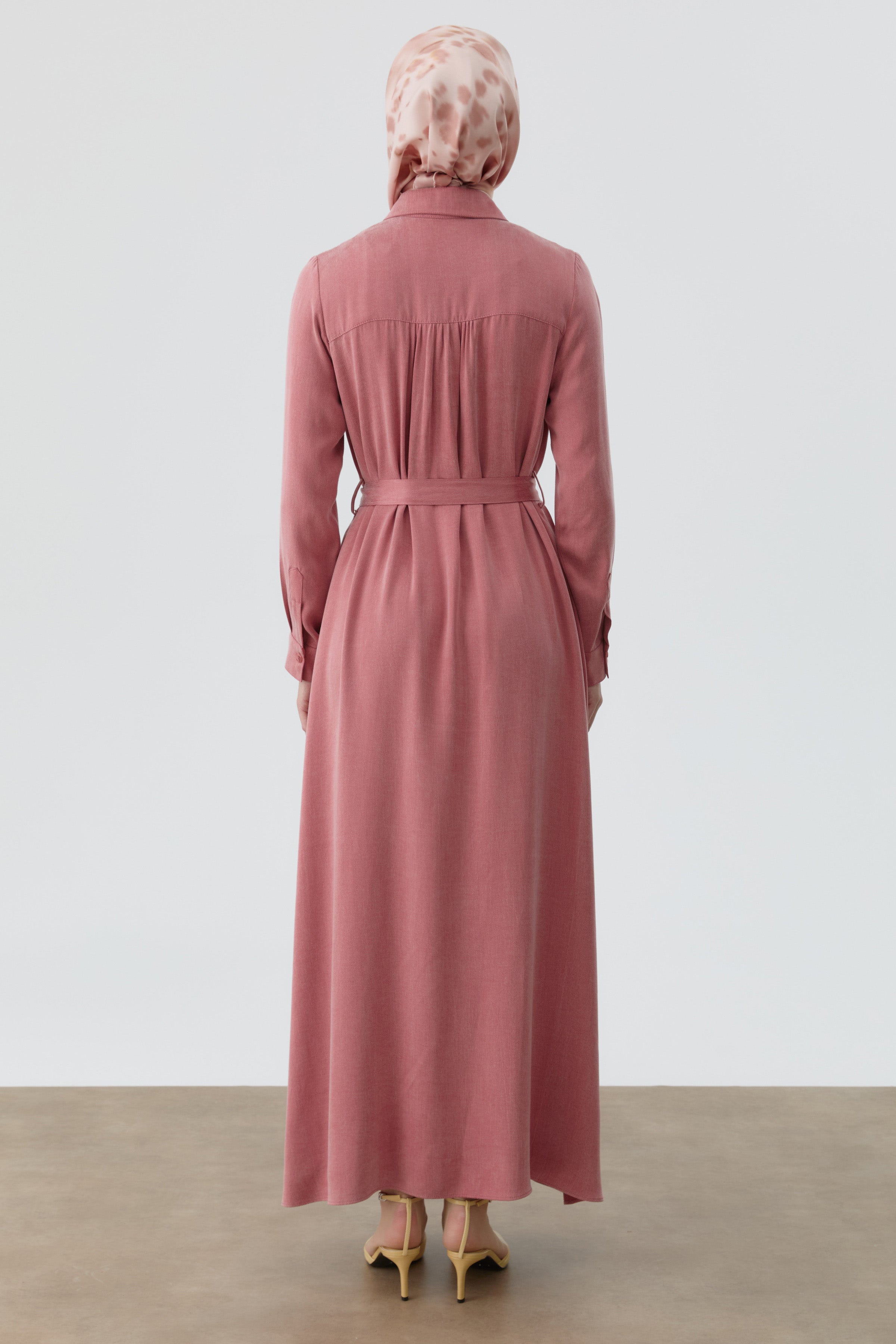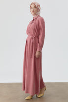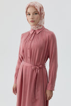Robe ceinturée avec empiècement - Bois de rose