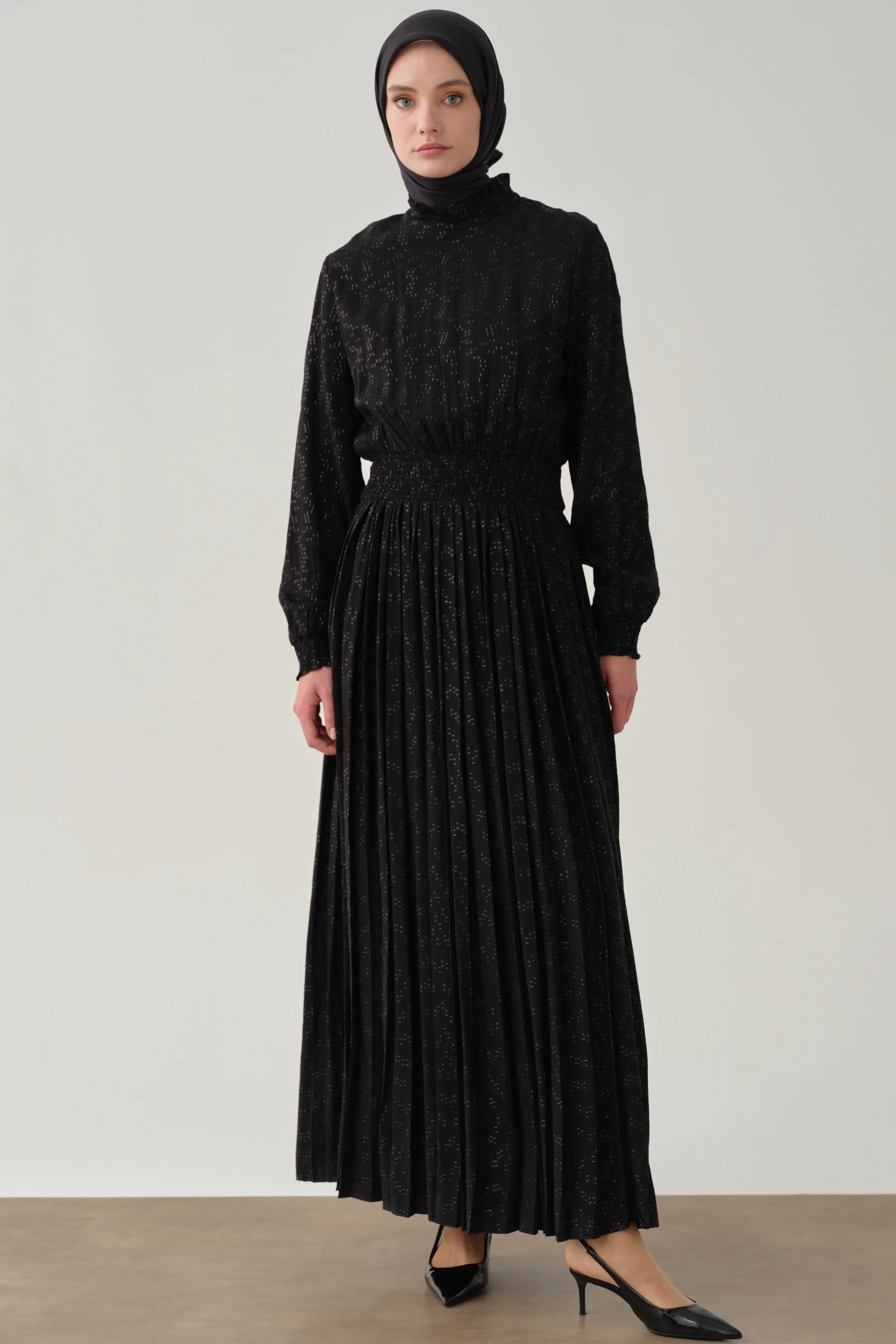 Robe plissée à détails élastiques - Noir