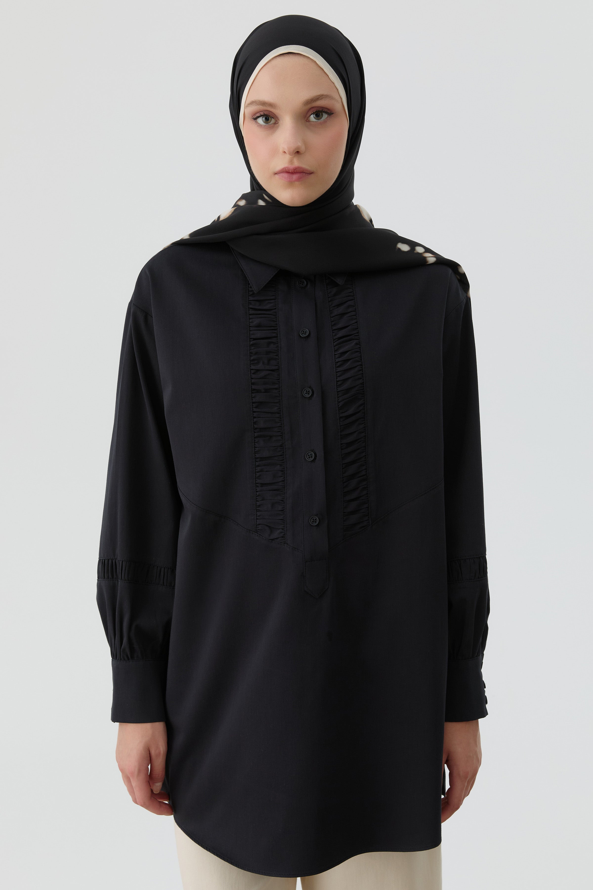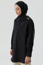 Tunique avec fronces et détail fendu - Noir