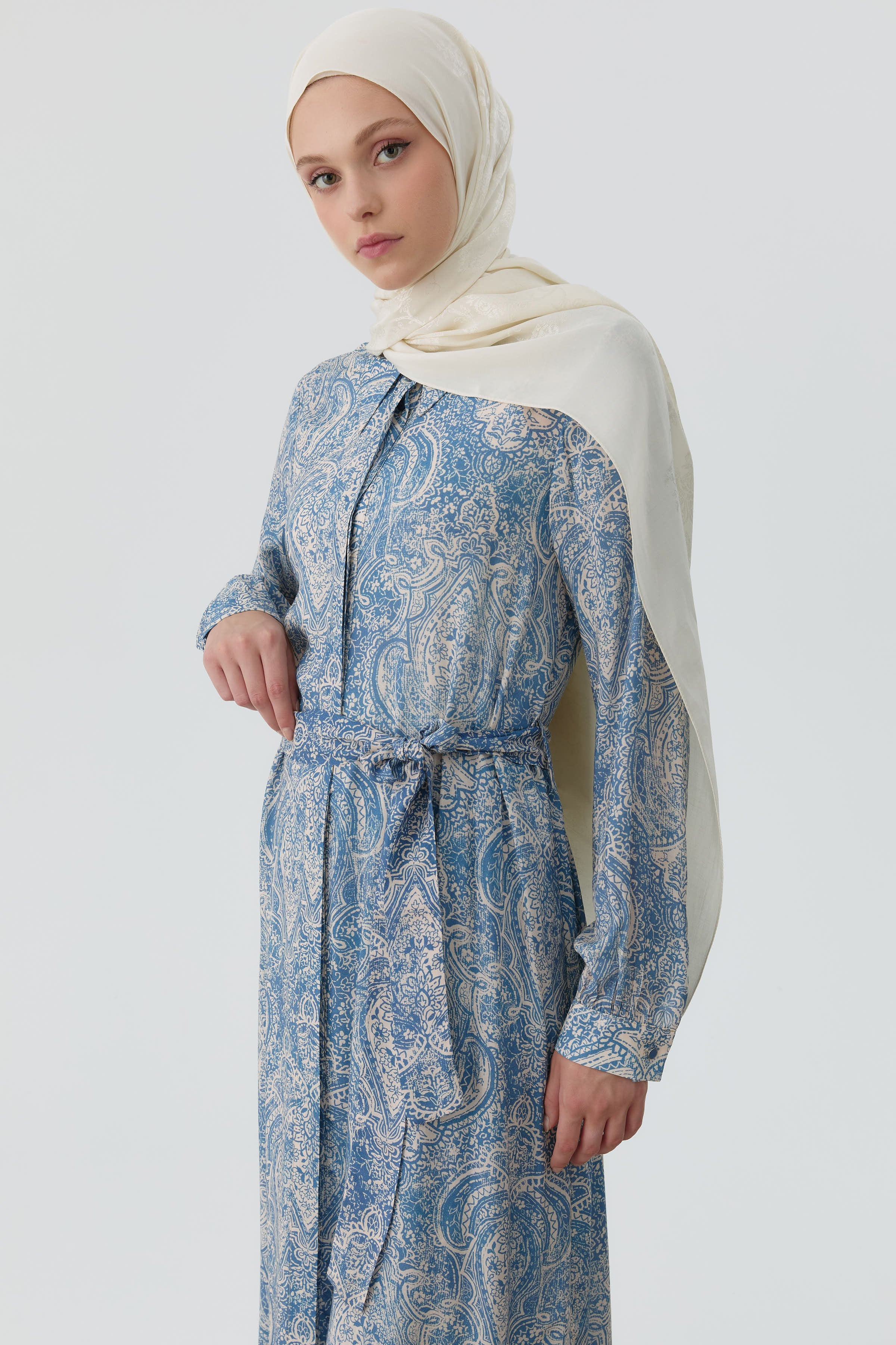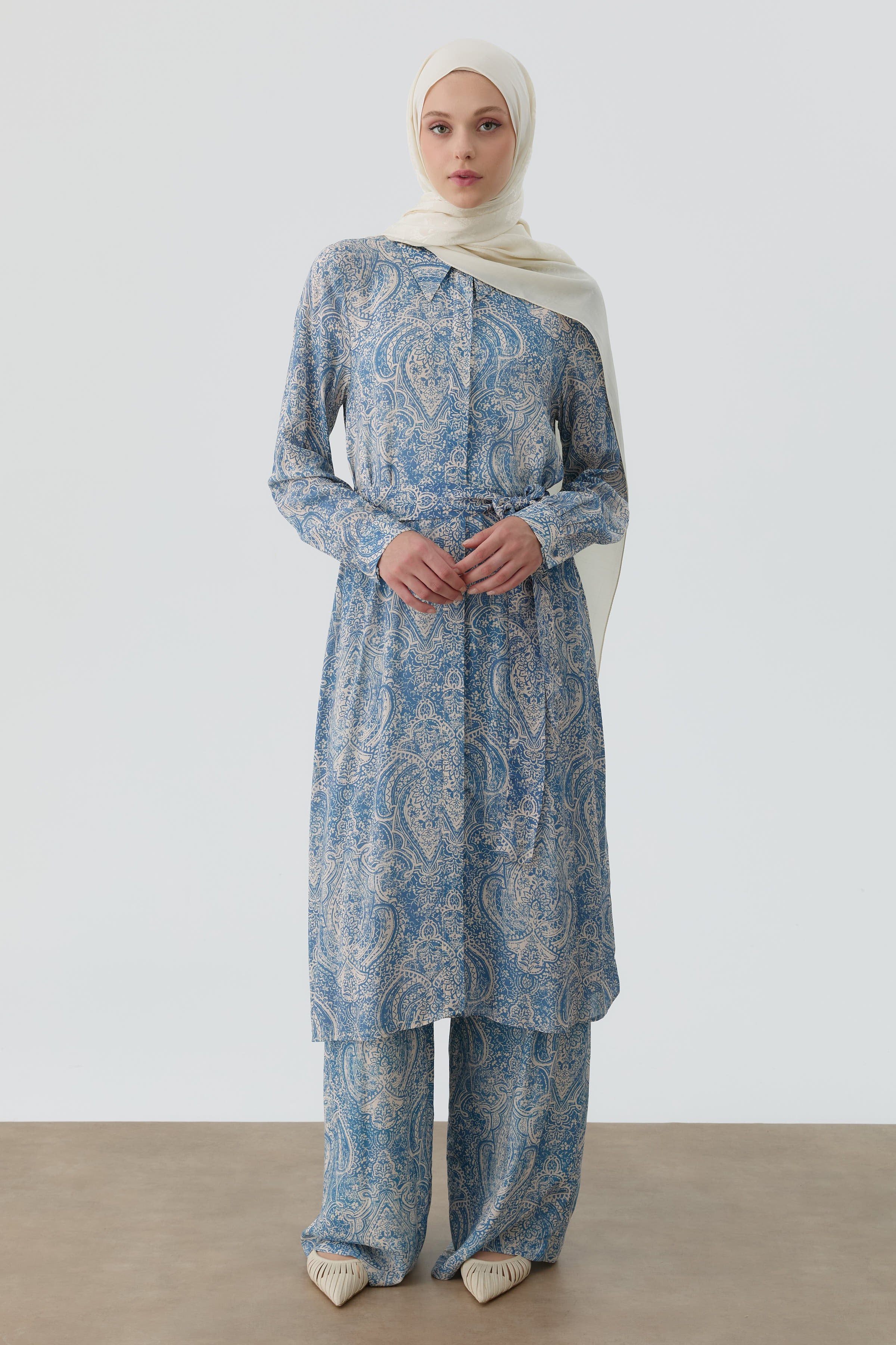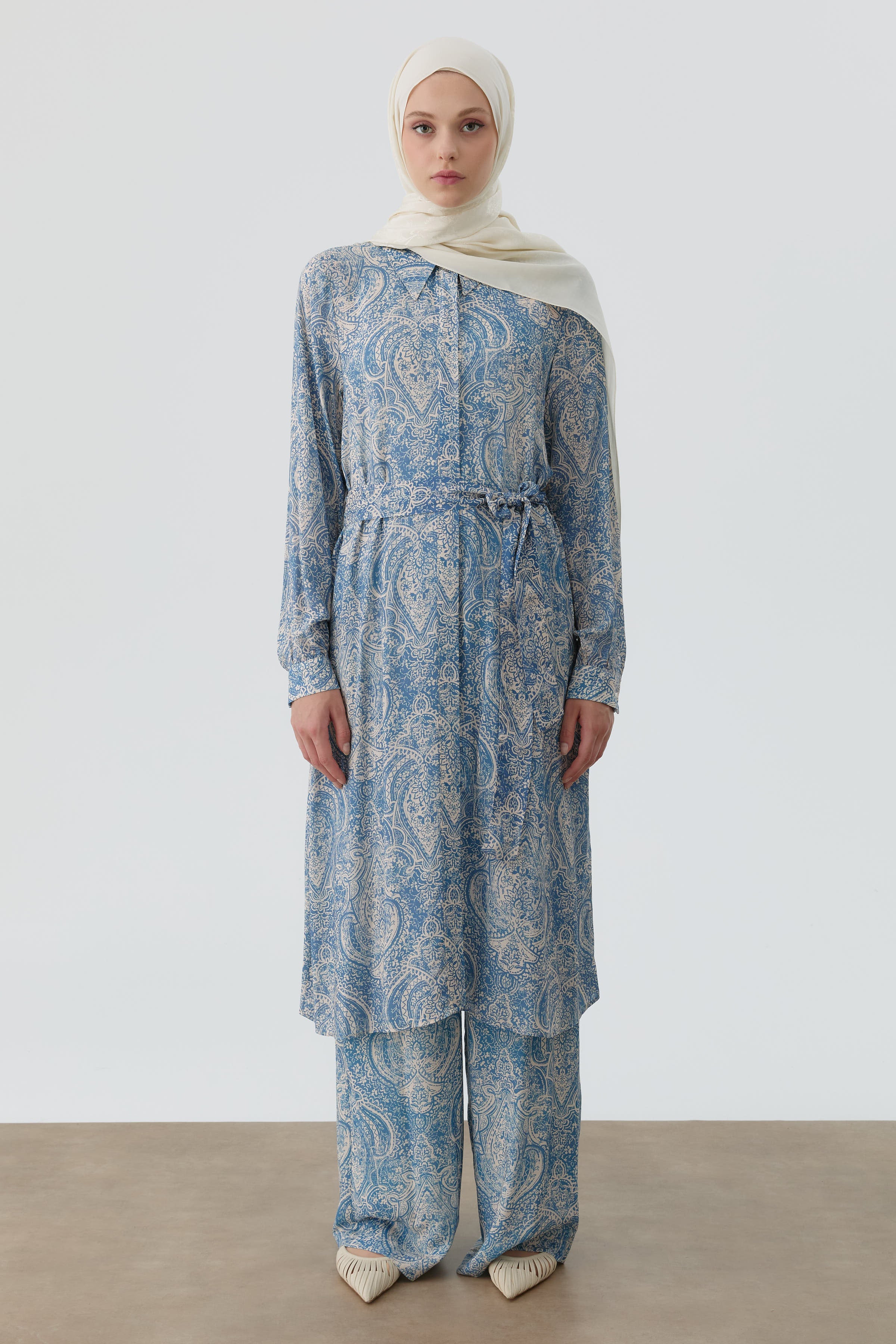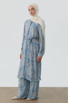 Tunique ceinturée à motif châle - Indigo