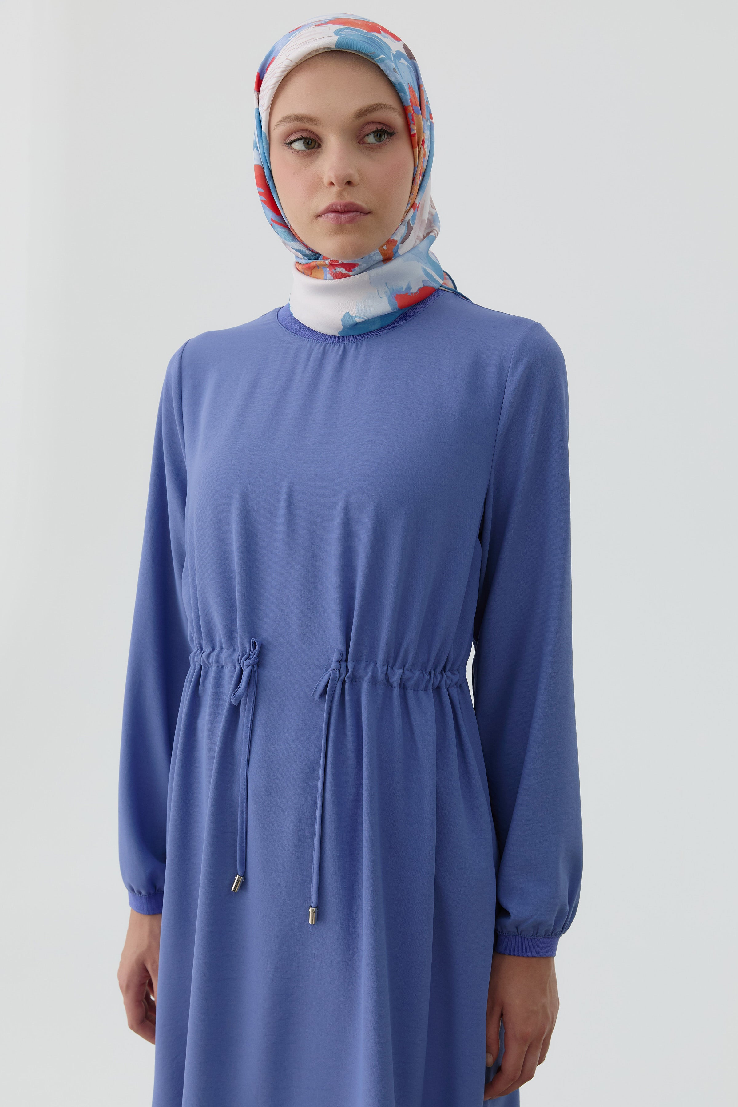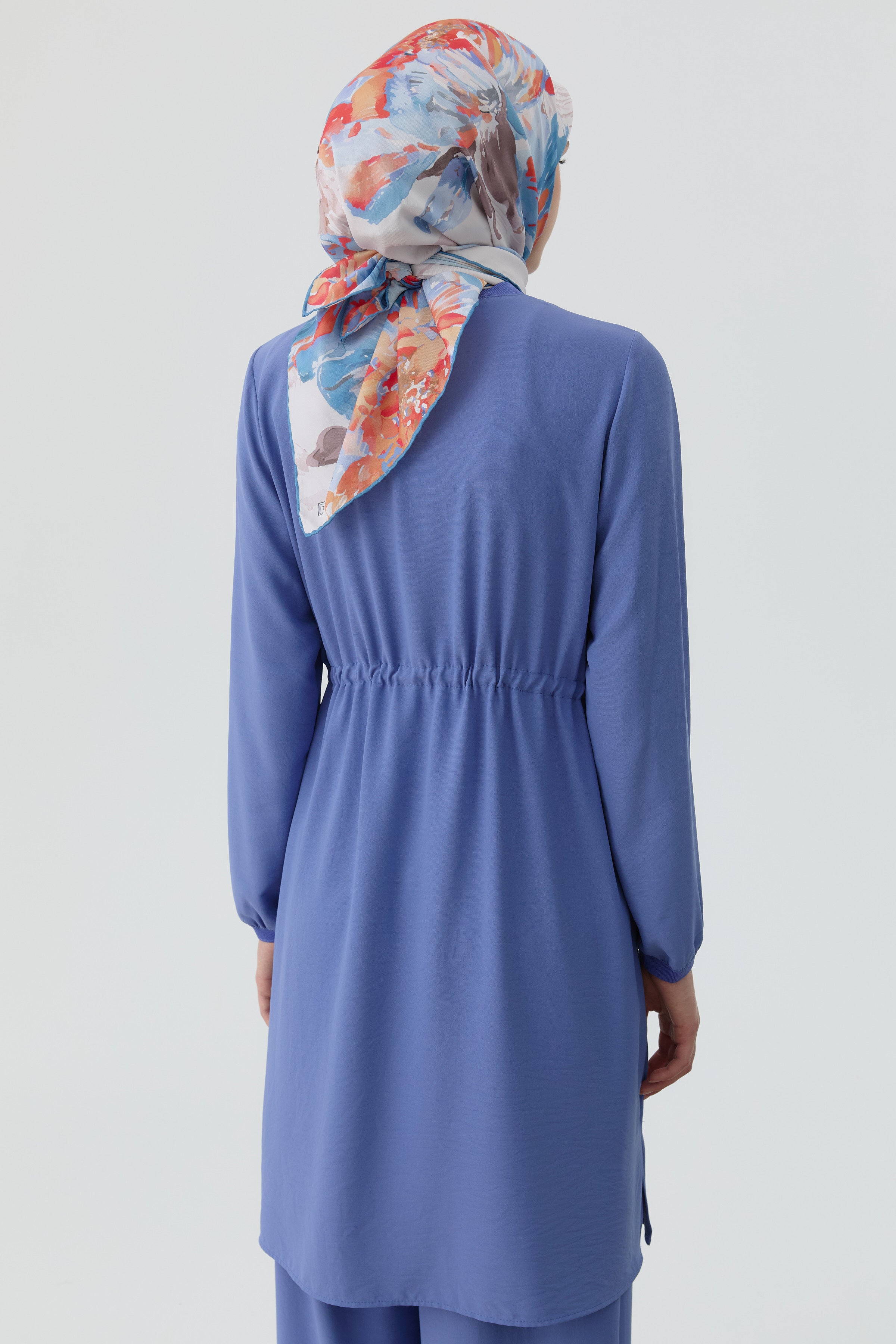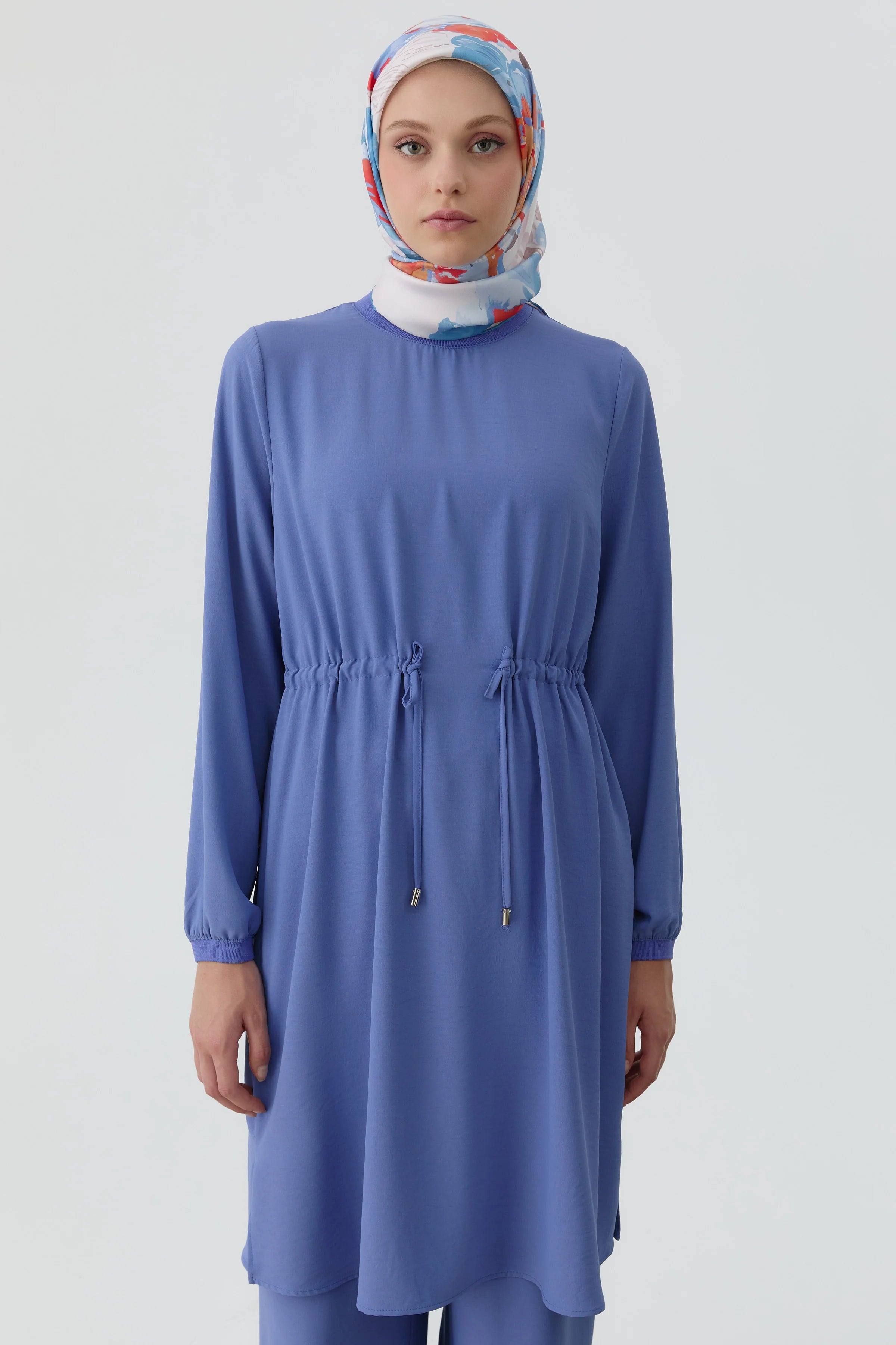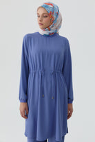 Tunique en maille côtelée avec cordon et pierres à la taille - Bleu aviateur