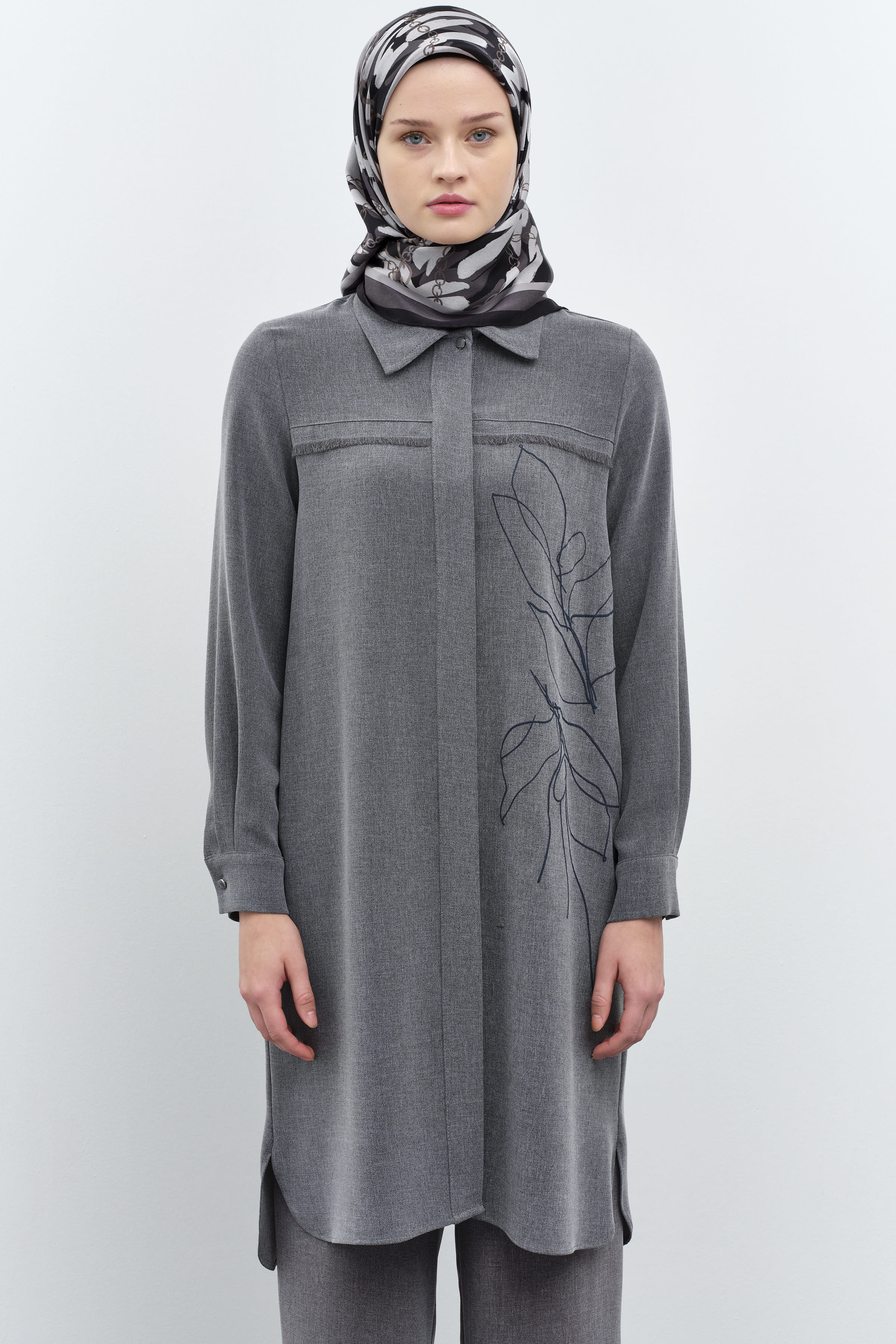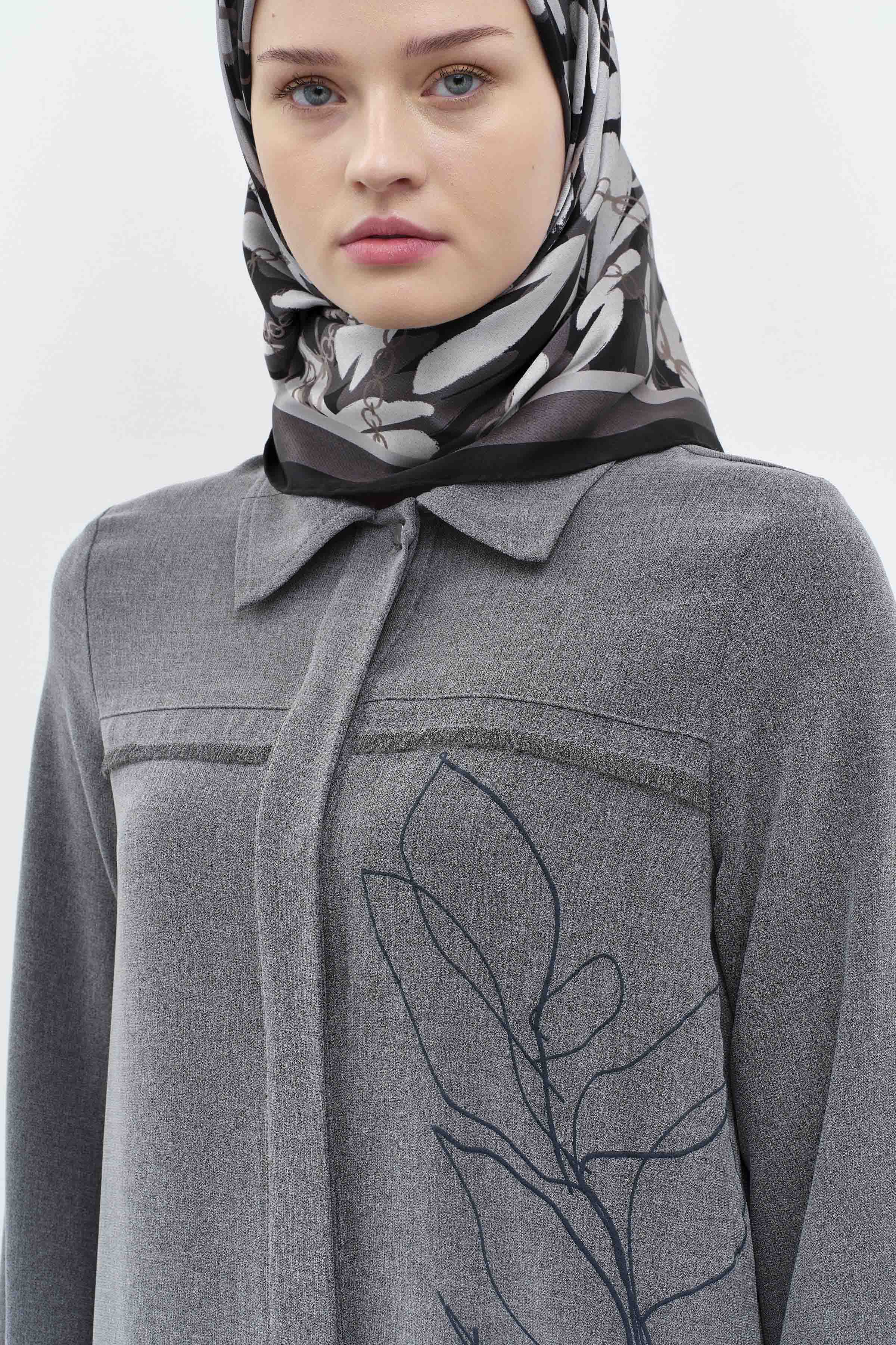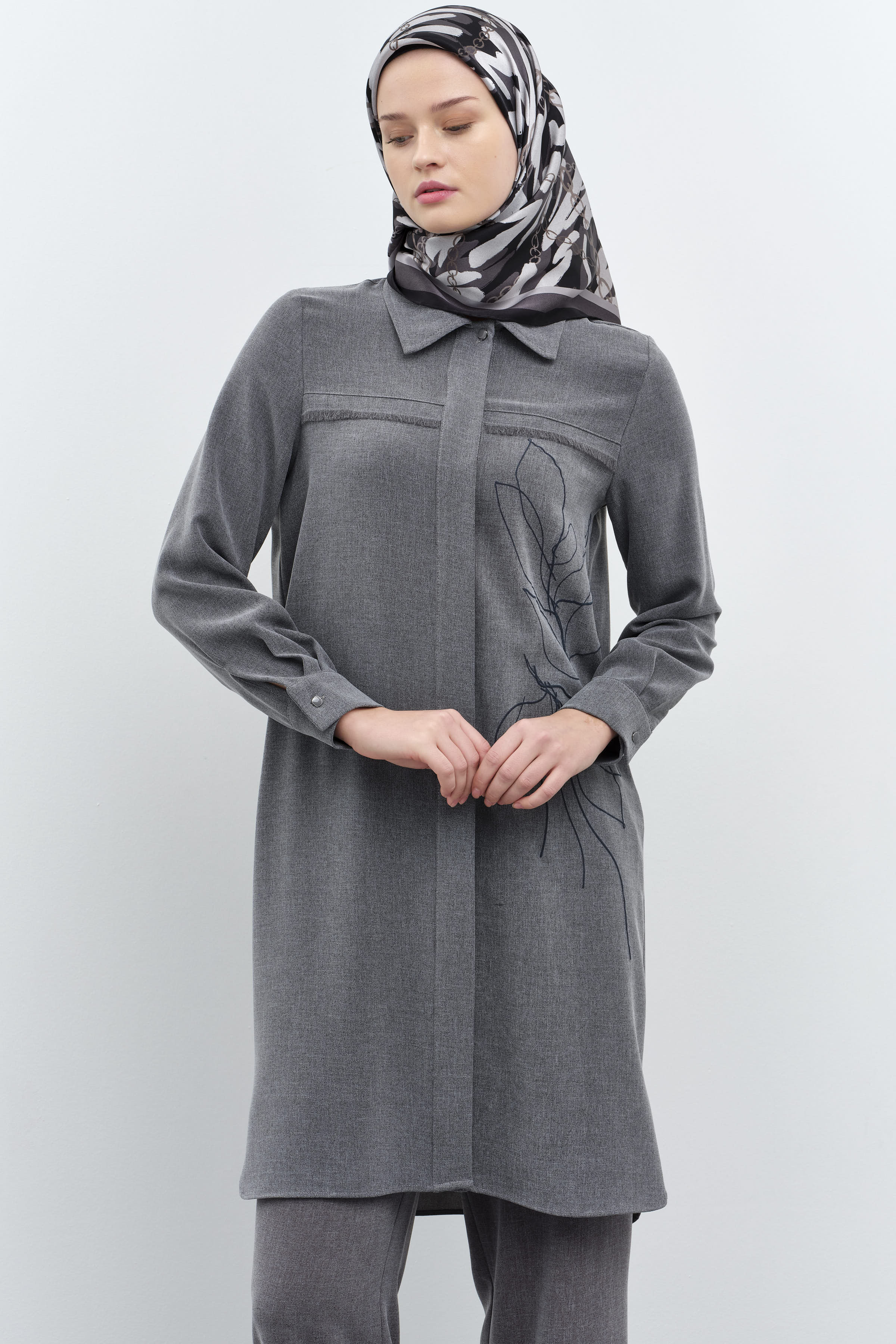 Tunique imprimée à motifs détaillés avec glands - Anthracite