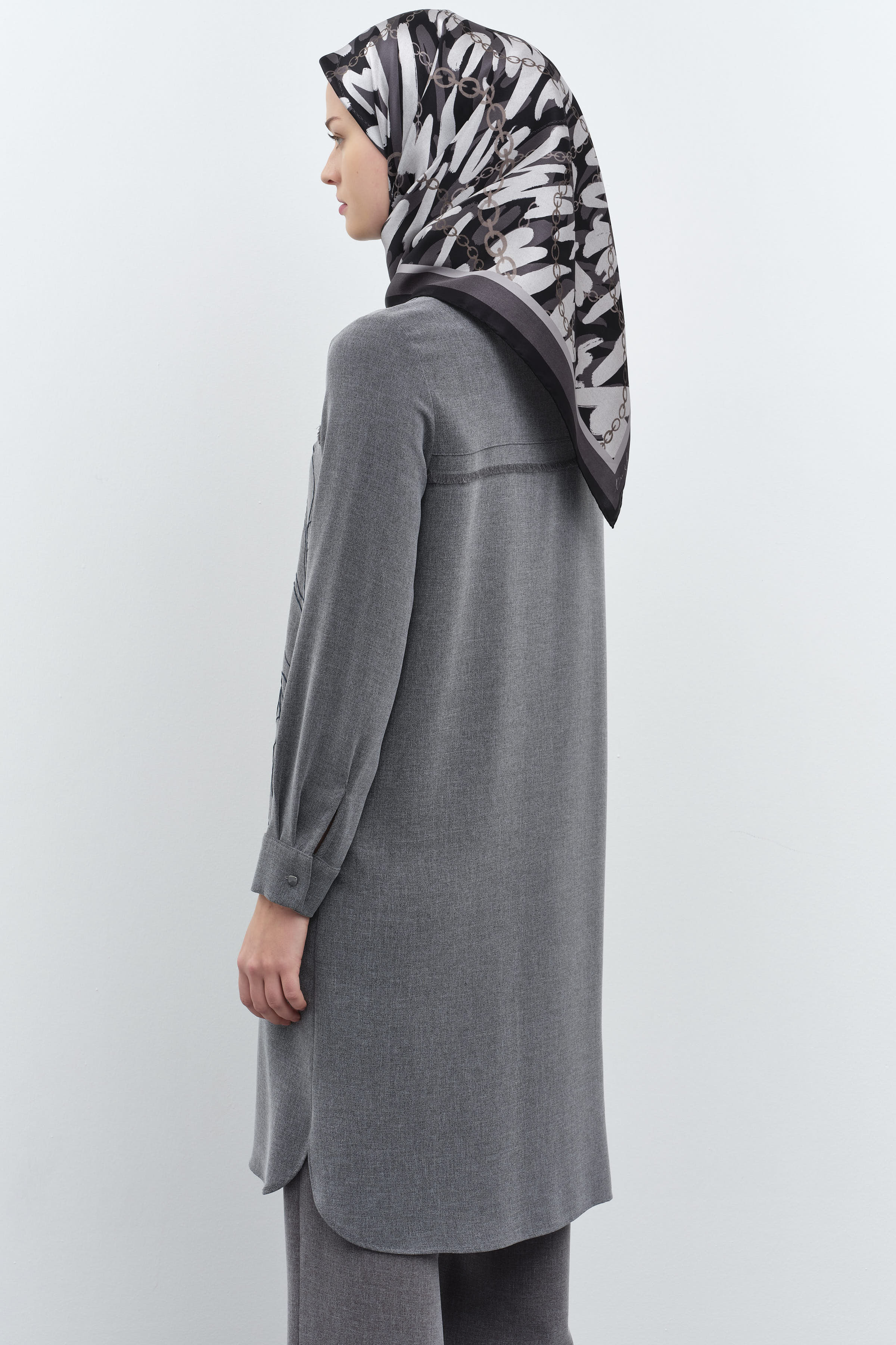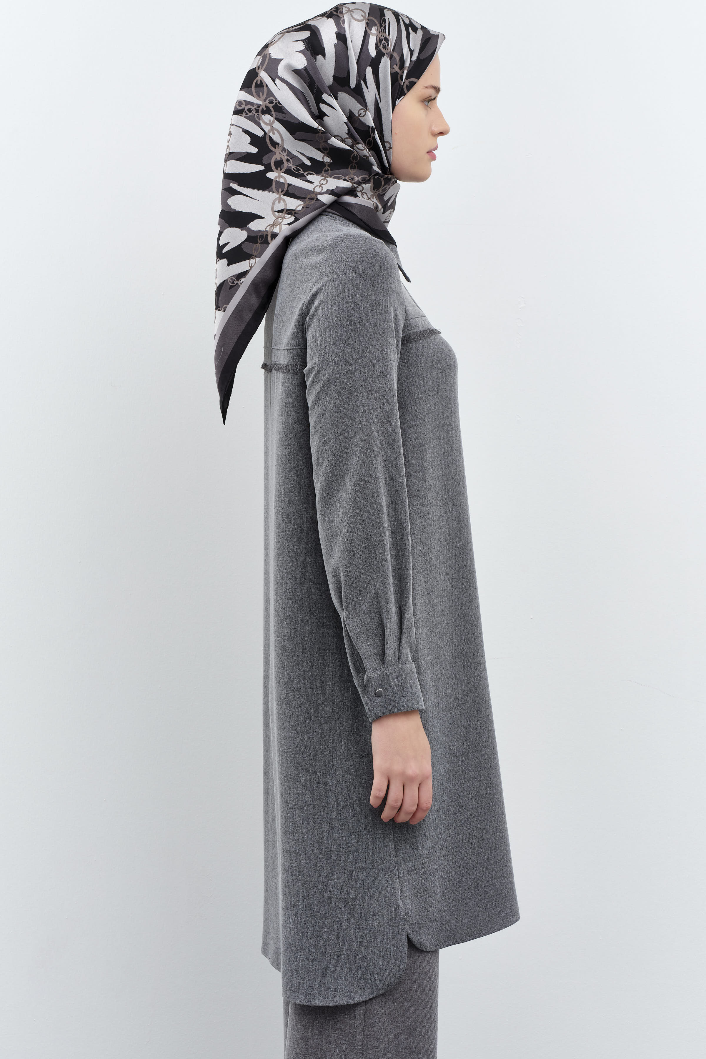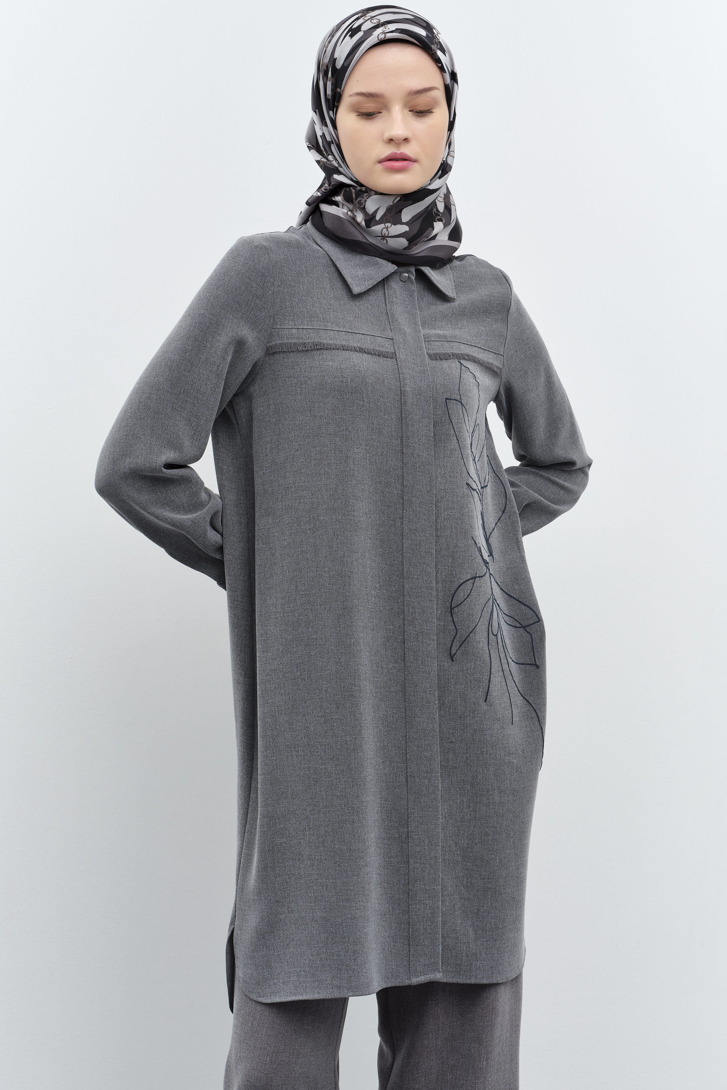 Tunique imprimée à motifs détaillés avec glands - Anthracite