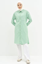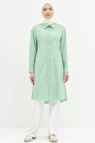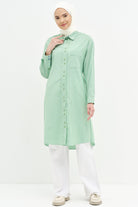 Tunique longue rayée avec liens à la taille - Vert