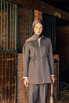 Veste à ceinture avec fermeture zippée - Gris fumée