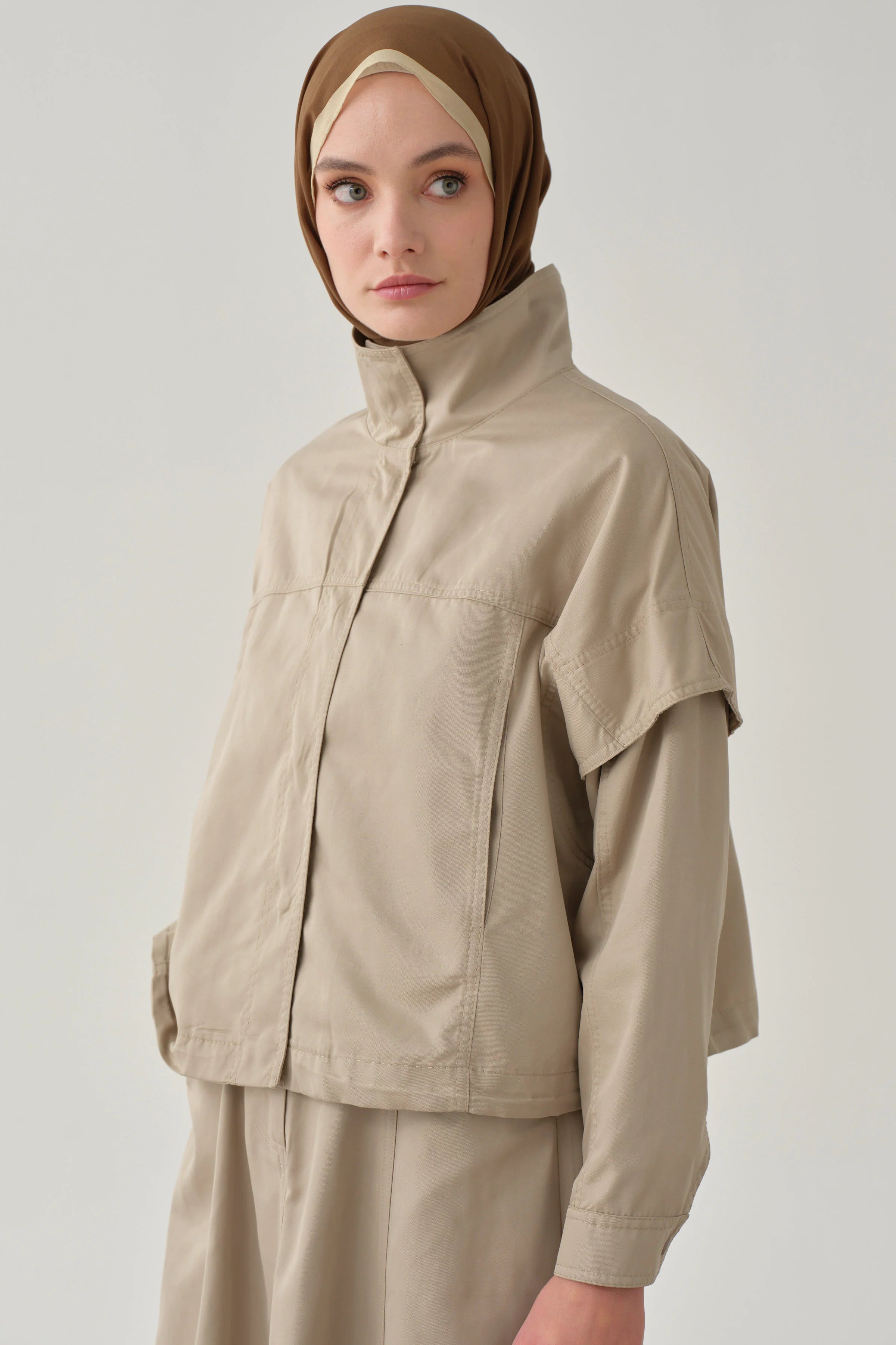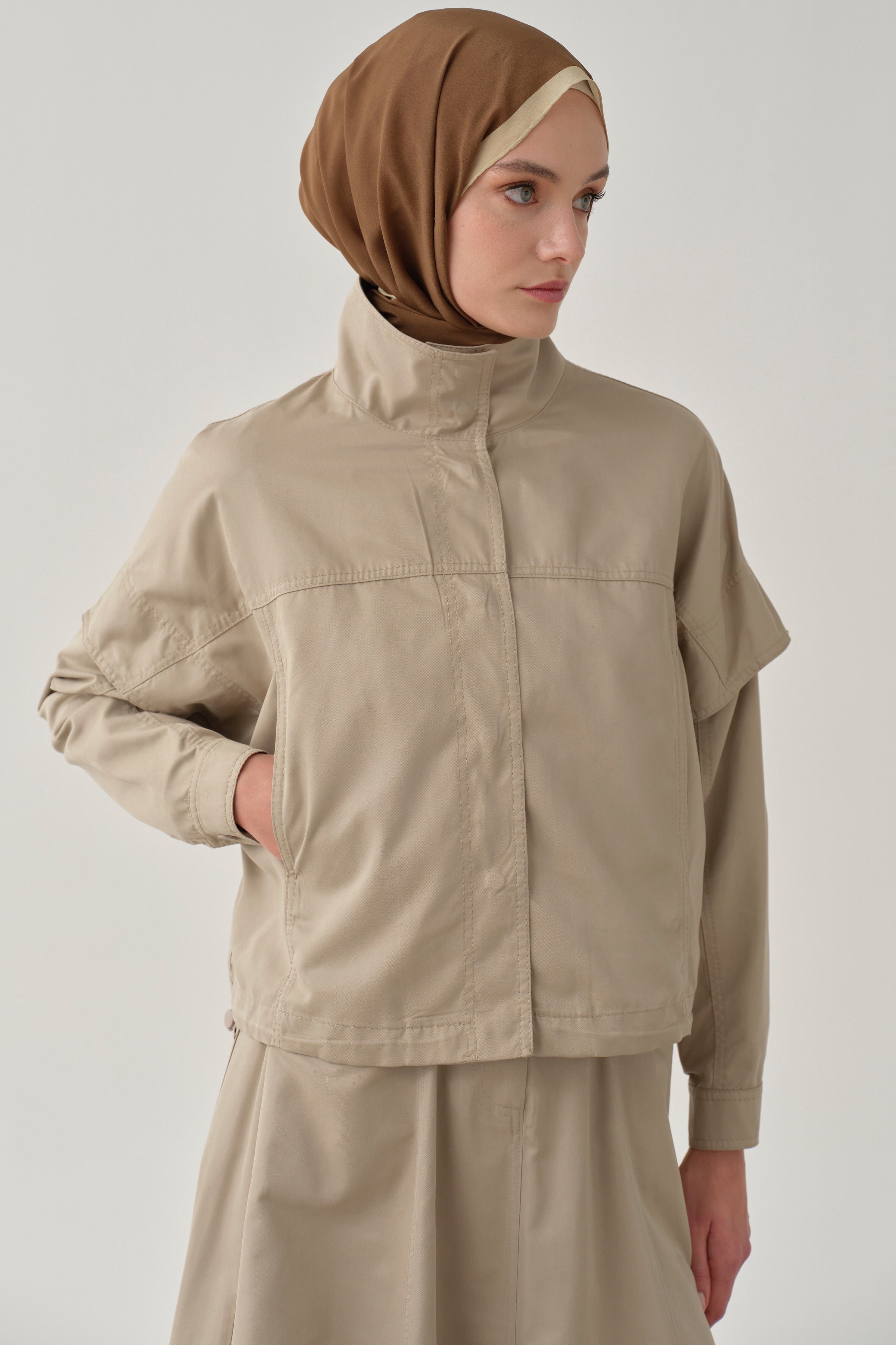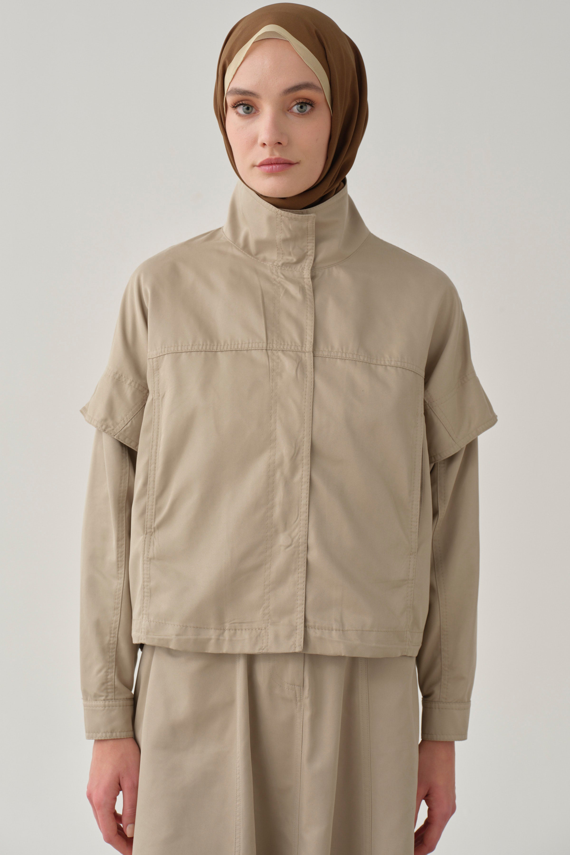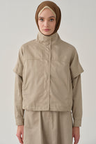 Veste crop à taille élastique - Grége clair