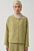 Veste crop matelassée avec passepoil en gros-grain - Olive